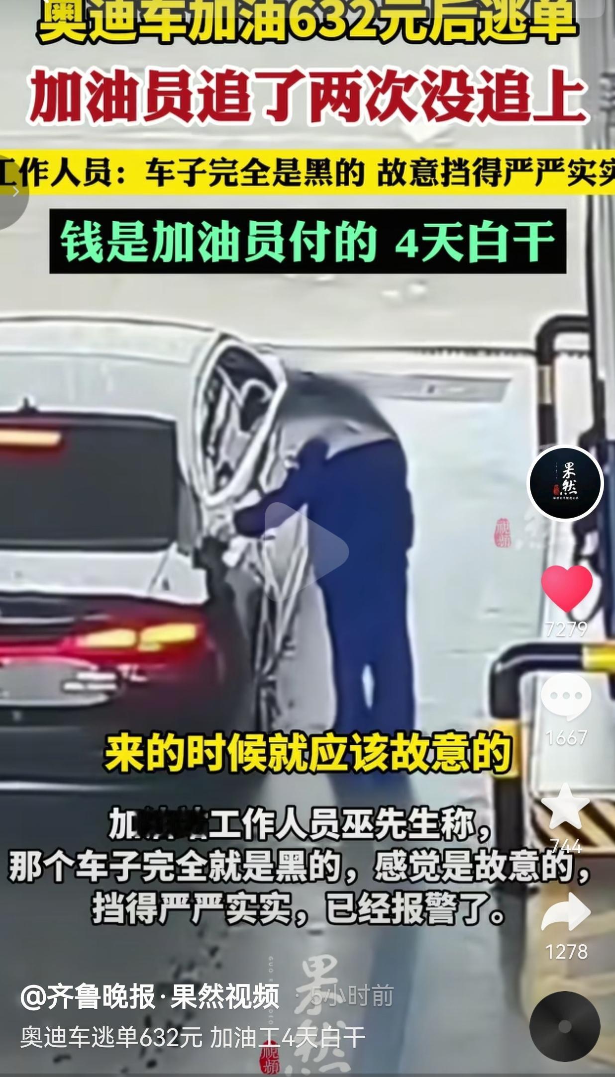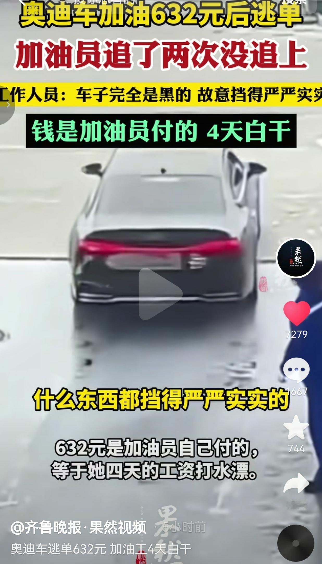 真的是气得浑身发抖!开几十万的奥迪,差这632块油钱?你要是真没钱,别开奥迪啊!别加油啊!故意挡车牌、预谋逃单,这哪里是逃单,这就是明晃晃的抢劫!