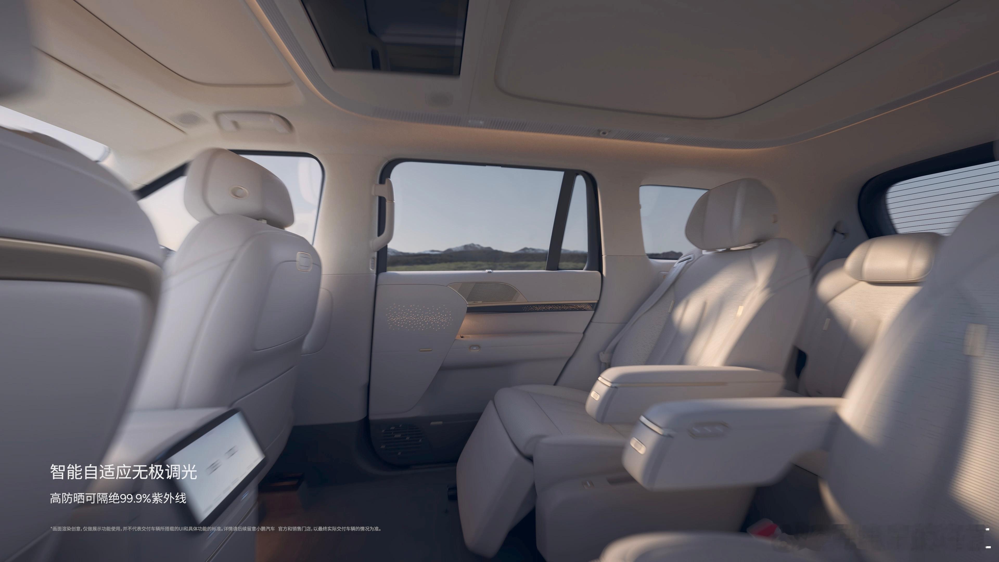 小鹏GX二排除了顶部有个电视外二排还有一个小屏幕越来越有意思了小鹏GX隐私玻璃调