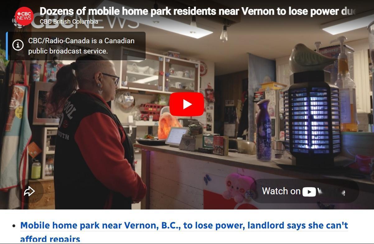 当地时间周五,加拿大BC省弗农的皇冠别墅移动房屋园区被正式断电。原因是代表省政府监管高风险技术安全系统和设备的不列颠哥伦比亚技术安全组织认为电气系统不安全。断电后这个社区的12栋住宅没有电、没有Wi-Fi和自来水,因为该地的井泵是用电驱动的。