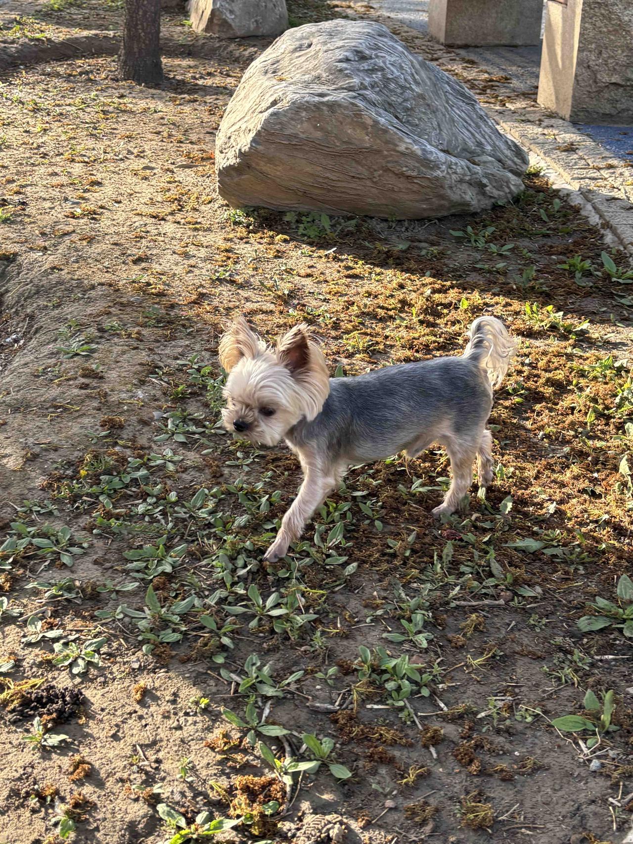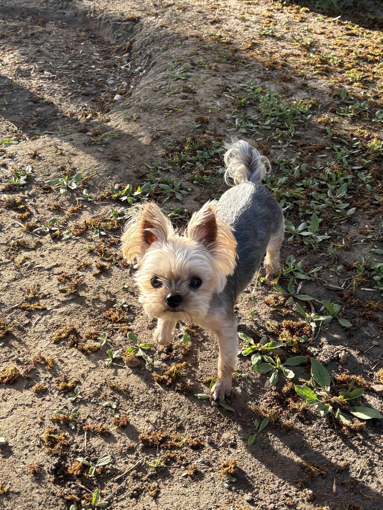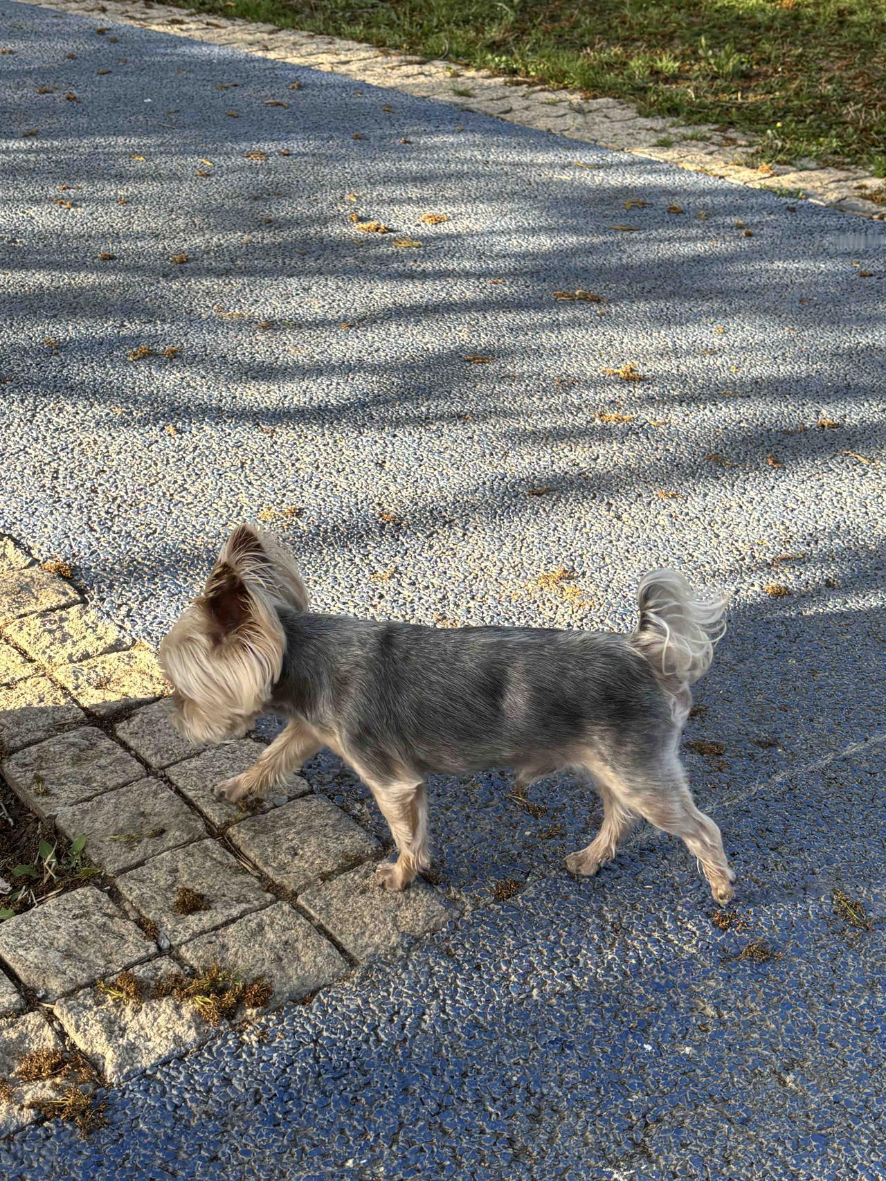 顺着护城河来回跑了五公里,在北滨河看到一条可爱的小狗狗,不知道是散养的还是落单了。