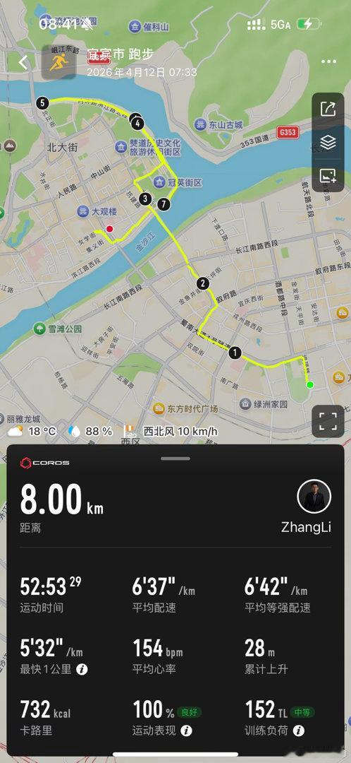 一睁眼纪录也破了,那就晨跑宜宾,一两口蘑一两燃面庆祝下~