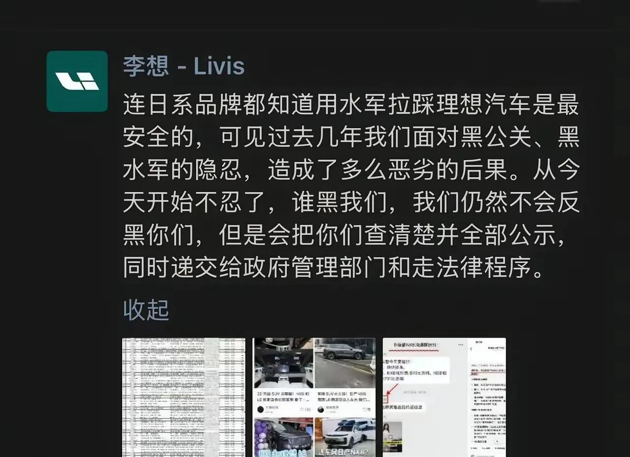 谁都有理想,你看某品牌汽车负责人开始爆粗口了,汽车品牌哪家法务最多,恐怕你家的法务不少吧,人家有水军,你家的水军就没有了。 李老板作为一个企业家你开的是谁家的法拉利,你家的汽车你为不开,作为老百姓我也看不下去。