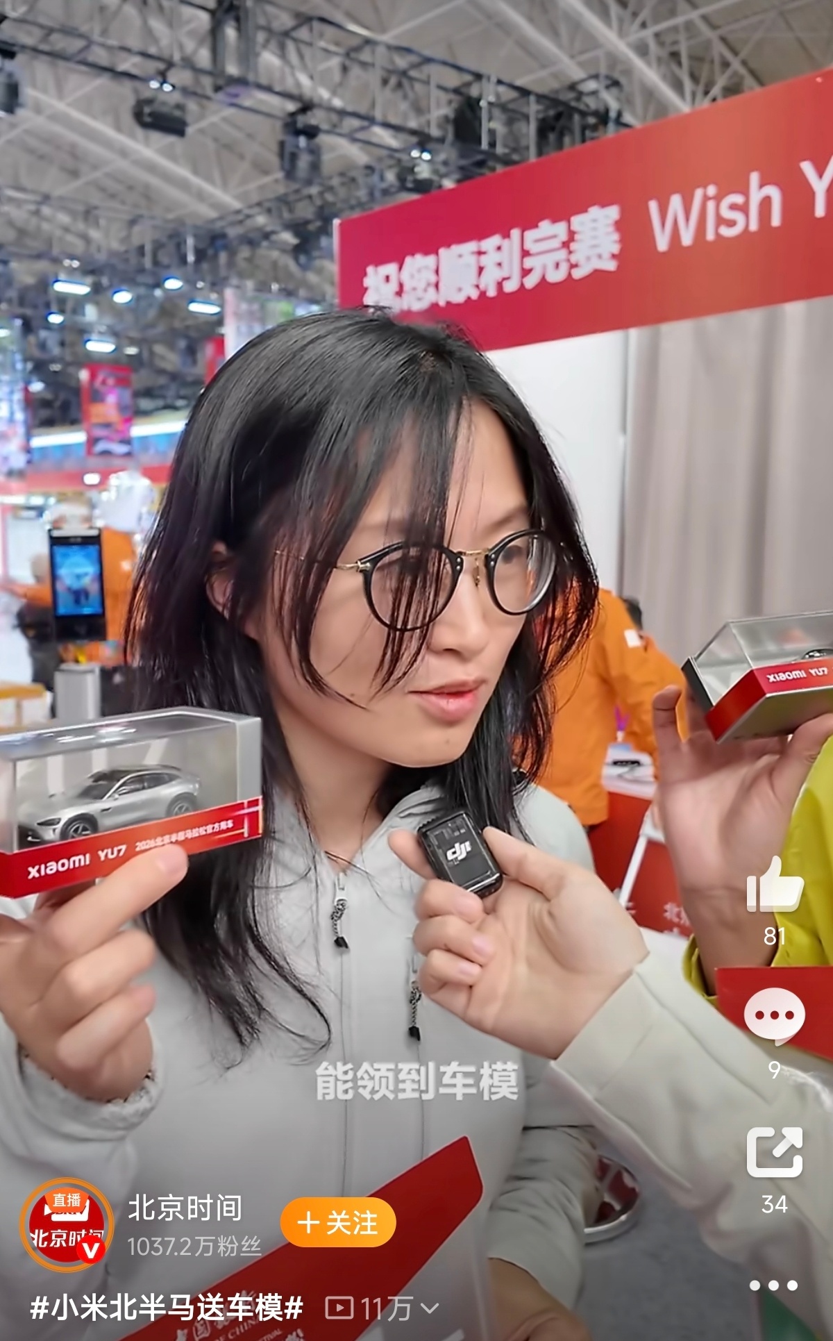 比赛过程中,小米也为参赛的选手们准备了YU7的1:43车模作为伴手礼,甚至米粉们也自发组织起了“小米跑团”和拉拉队,参与感拉满!其实去年北京半马的官方用车还是保时捷Taycan,今年小米YU7成功接棒,旧王与新王的交替,这何尝不是“下一个赛道见”呢?