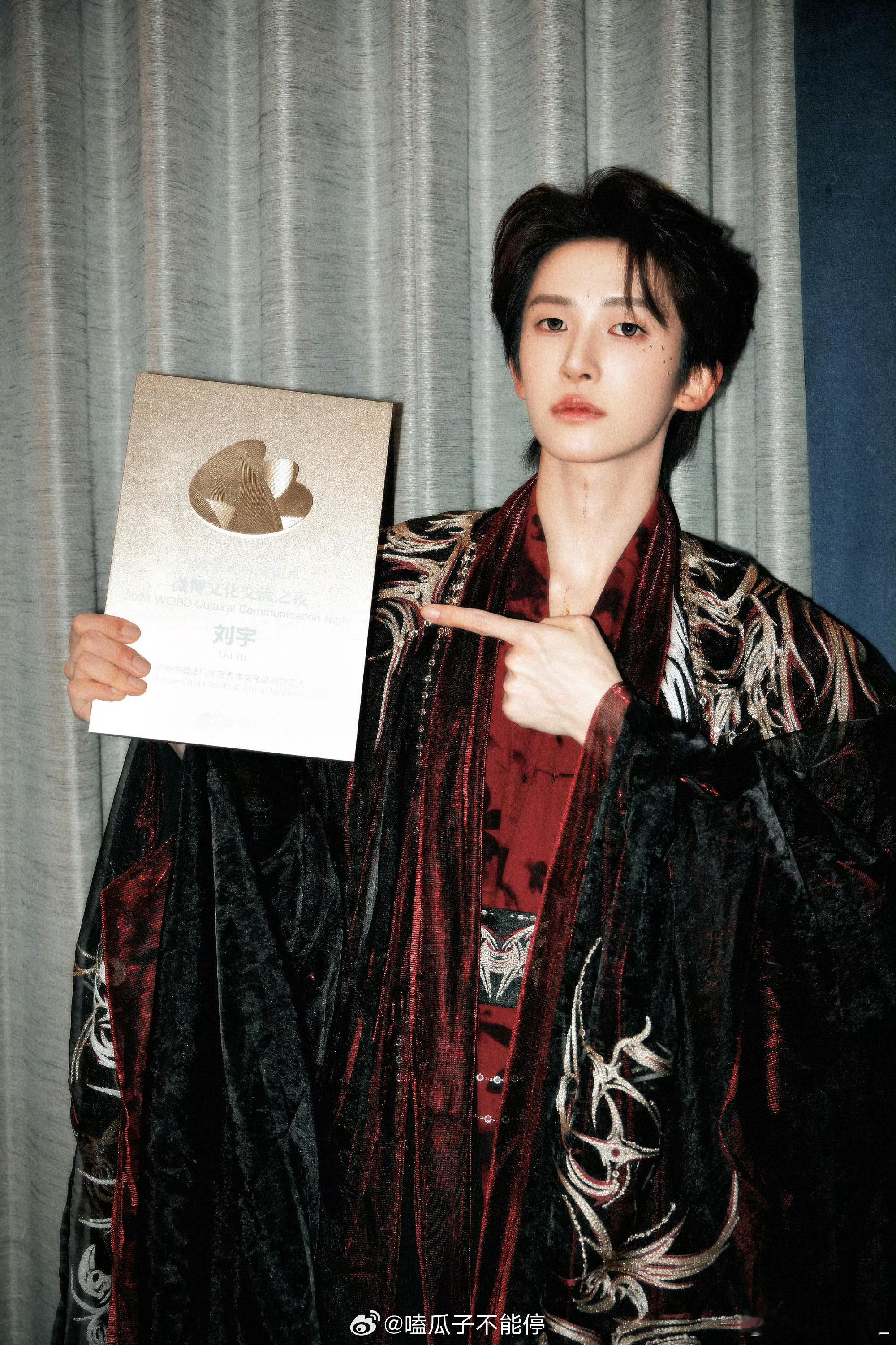 恭喜刘宇获奖,帅哥继续加油微博中国澳门年度青年文化影响力艺人实至名归