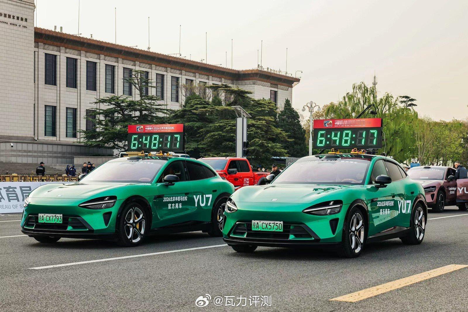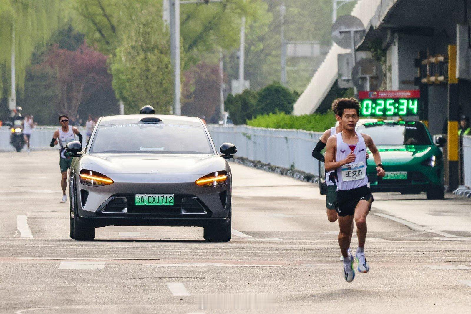 等跑完之后,在重点前和小米YU7计时车再来个合影,非常大的概率这些选手的微博、朋友圈、小红书什么的,全都会出现小米YU7计时车的身影。