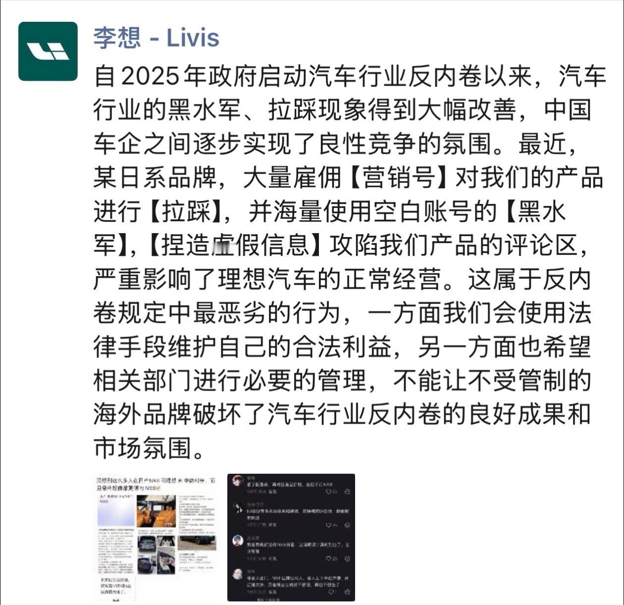 友商黑理想黑得太过分了,李想真沉得住气只在朋友圈吐槽,要是发到微博就热闹了