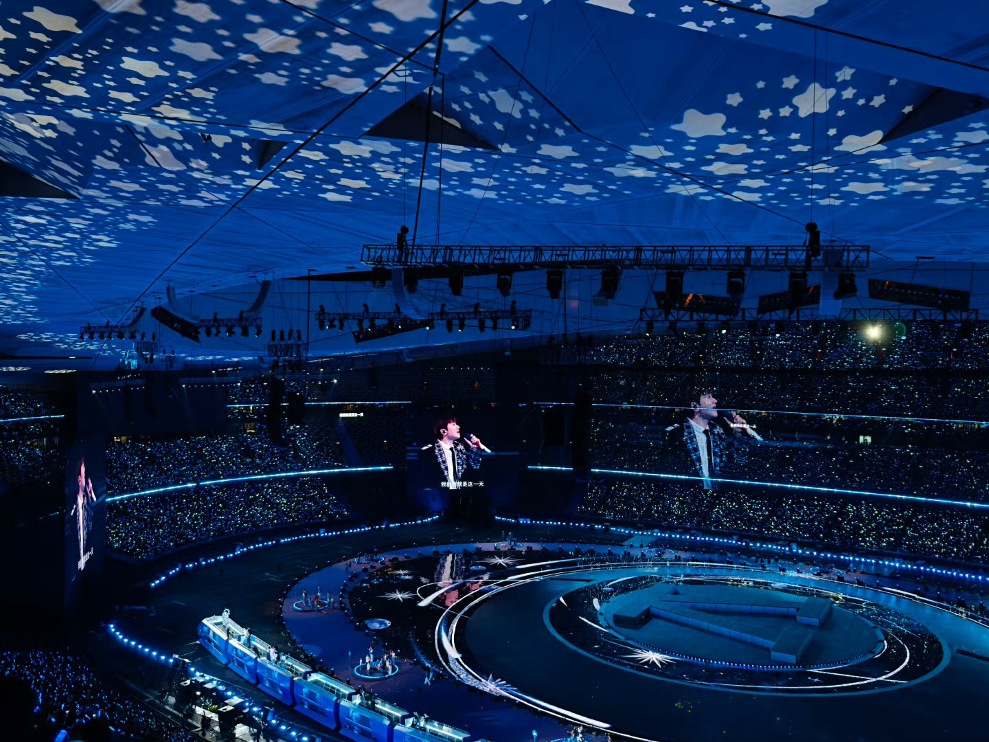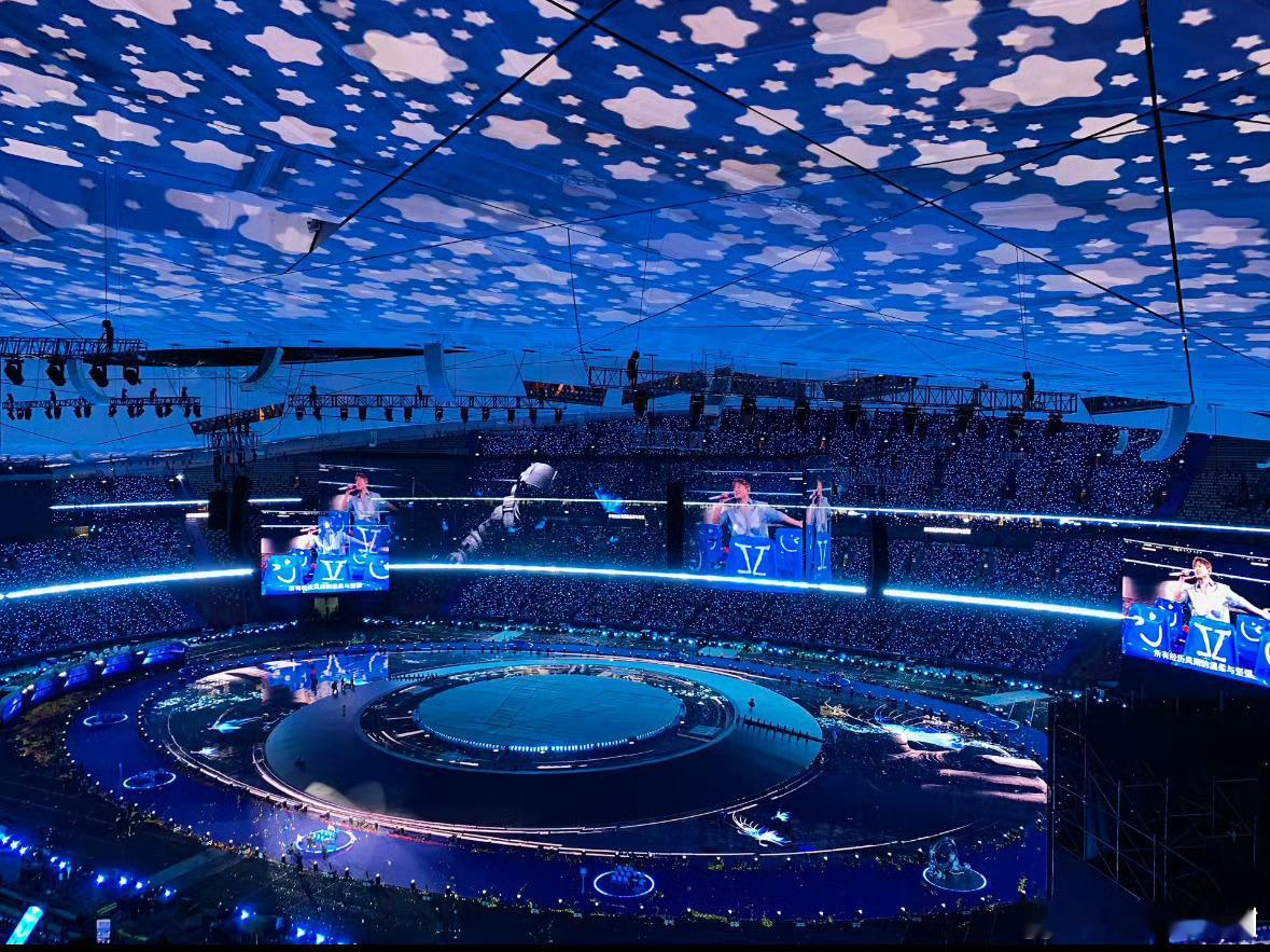 张杰给鸟巢造了星空顶震撼到起鸡皮疙瘩!鸟巢穹顶星光璀璨,随《今生今世》《年轻的战场》缓缓变换,把整个宇宙都唱给你听。