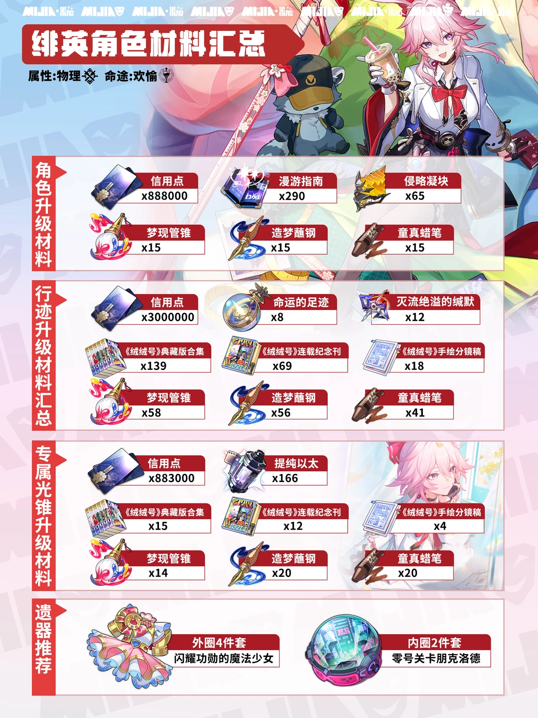 崩坏星穹铁道SP银狼lv999、绯英、欢愉主开拓者养成材料光锥遗器一图流攻略