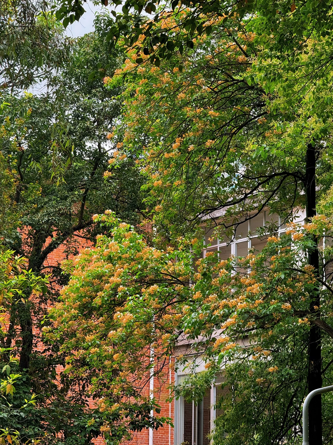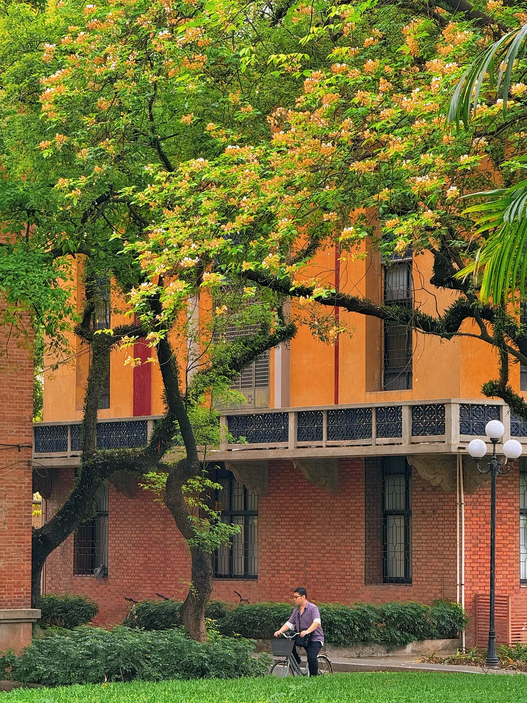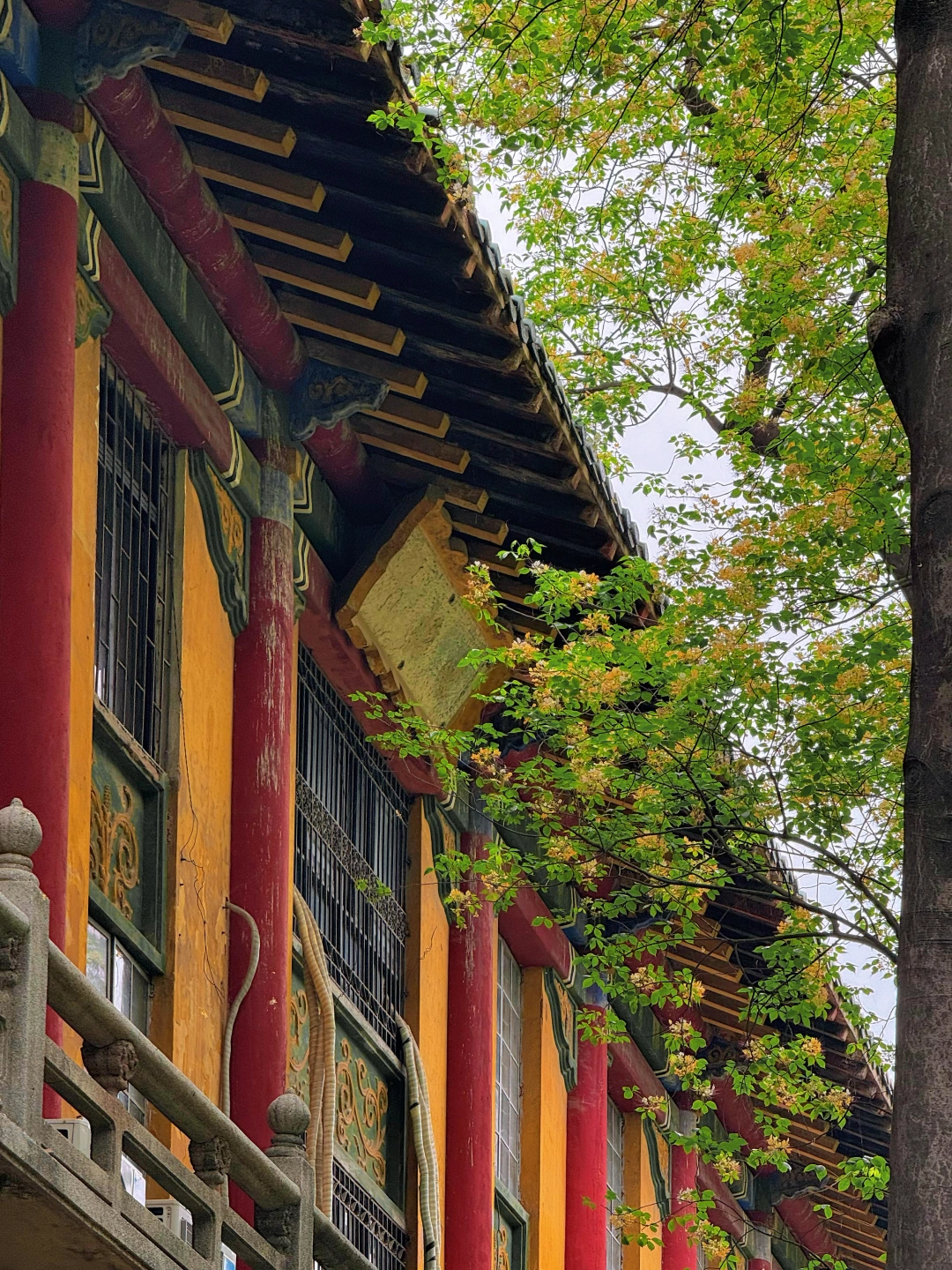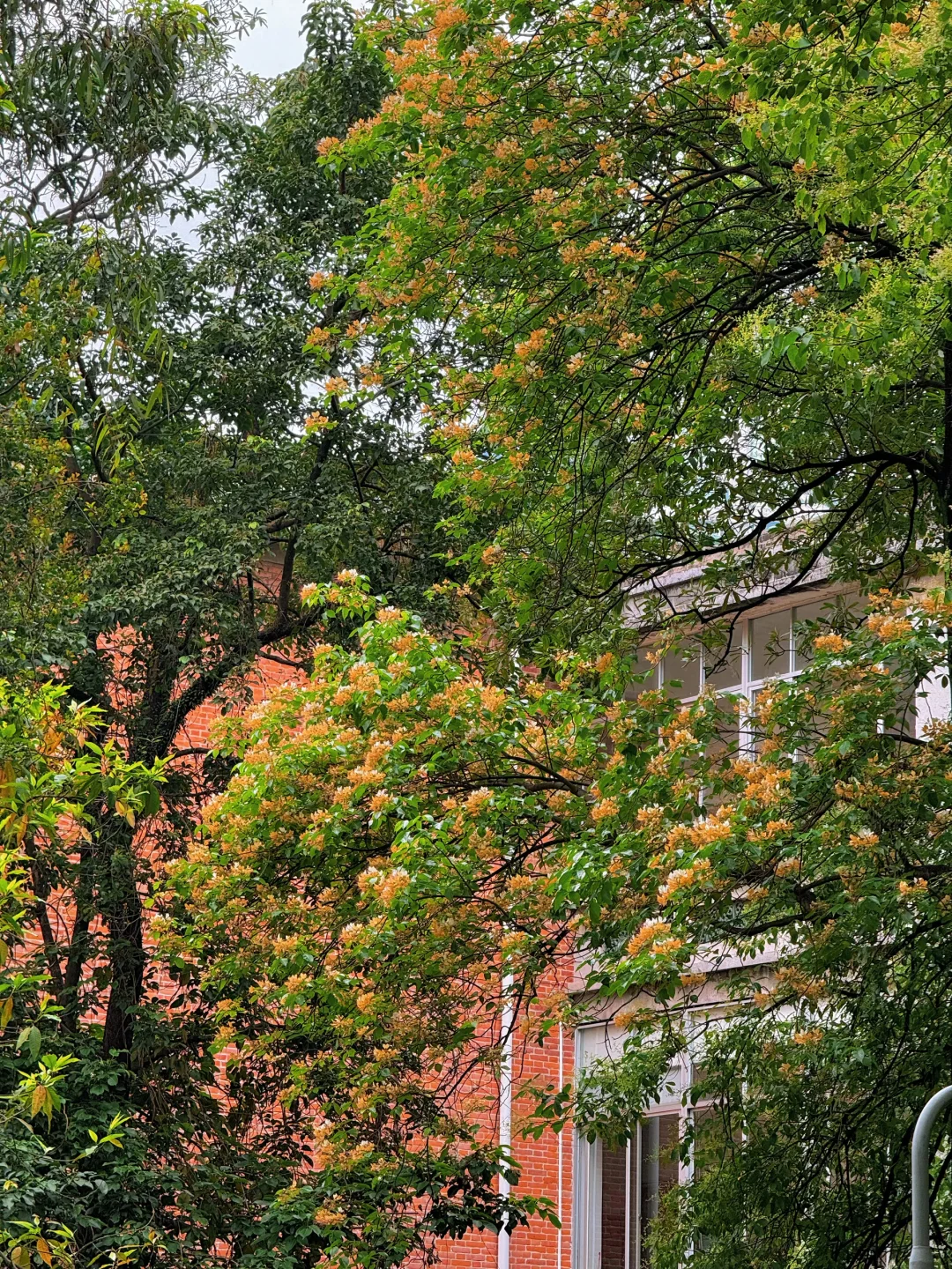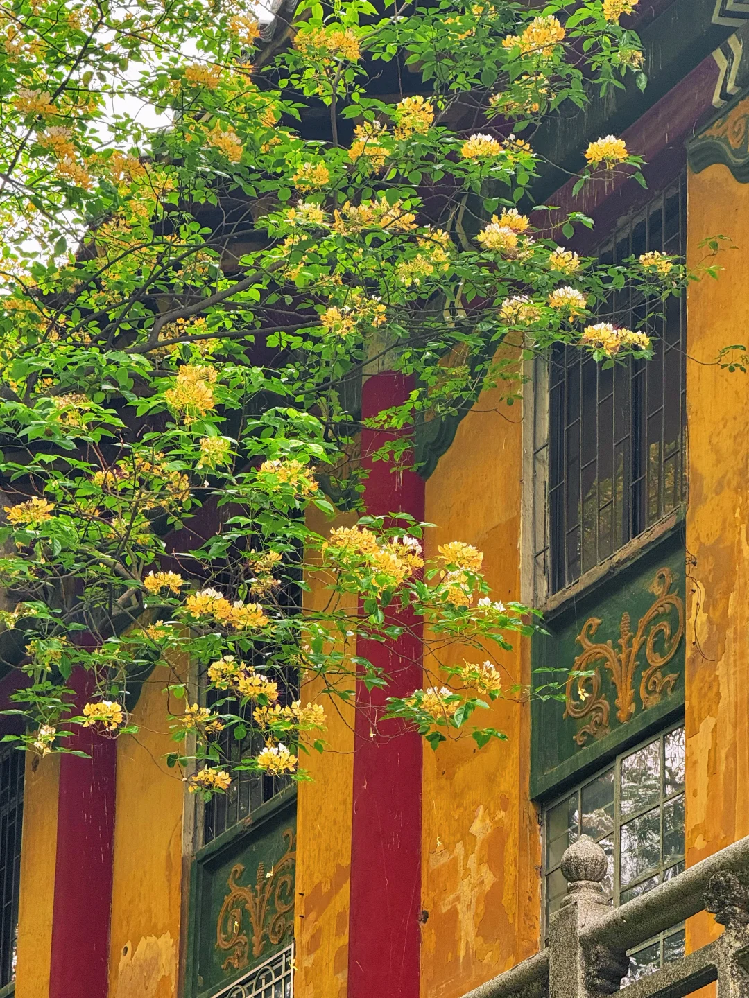 🙋🏻♂️🙋🏻♂️今天我专门去了中山大学南校区,百年红砖绿瓦旁,鱼木花正在盛放,虽然花不多,不过搭配这里的复古建筑真的绝美!