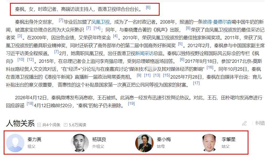 秦枫到底什么来头?目前微博粉丝有1458万人,妥妥的大V,但没有任何介绍。有人扒出她是香港卫视综合台台长,看起来像个媒体人。