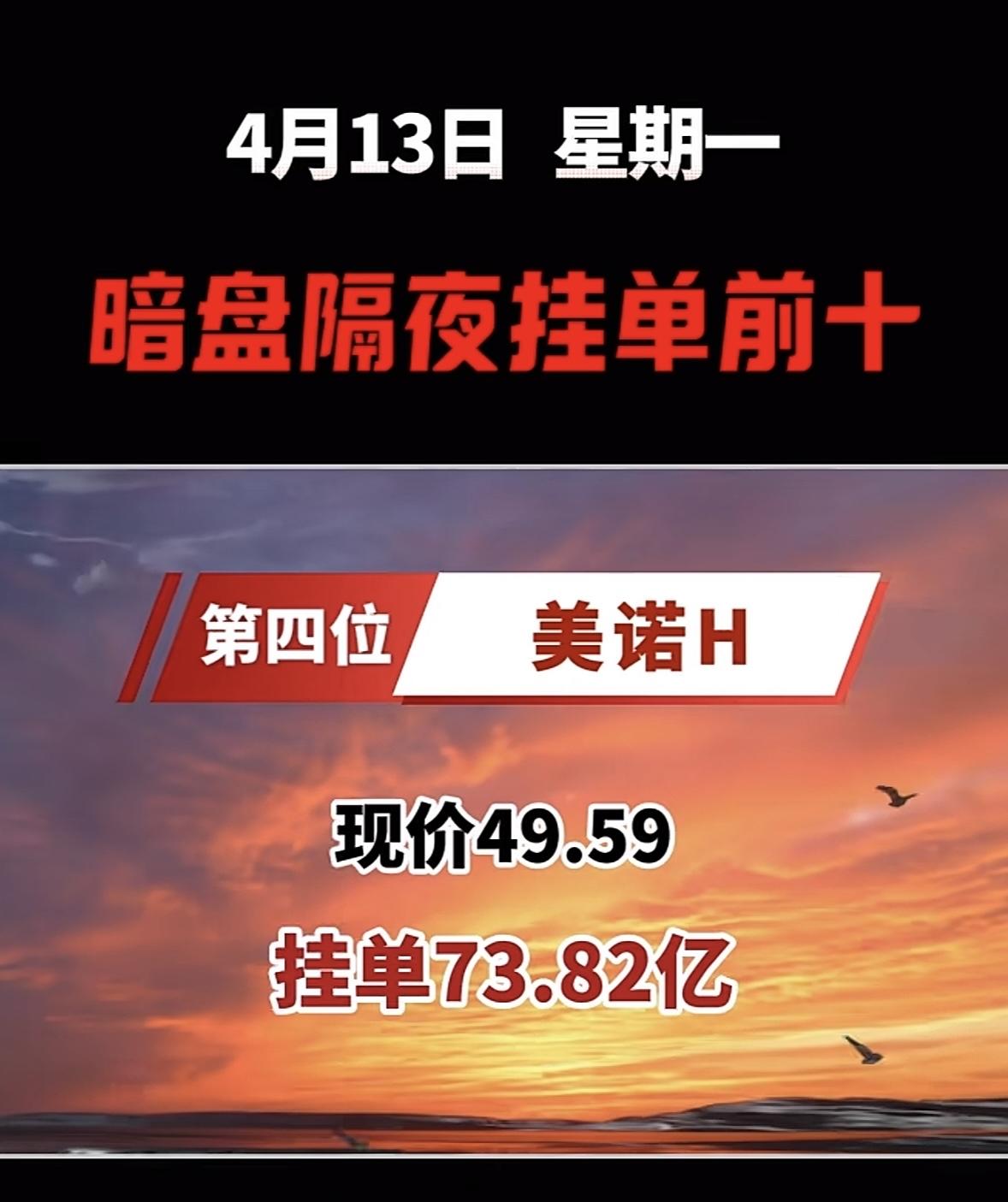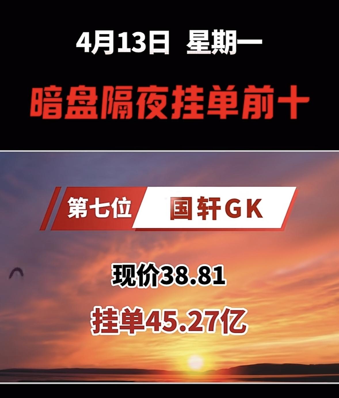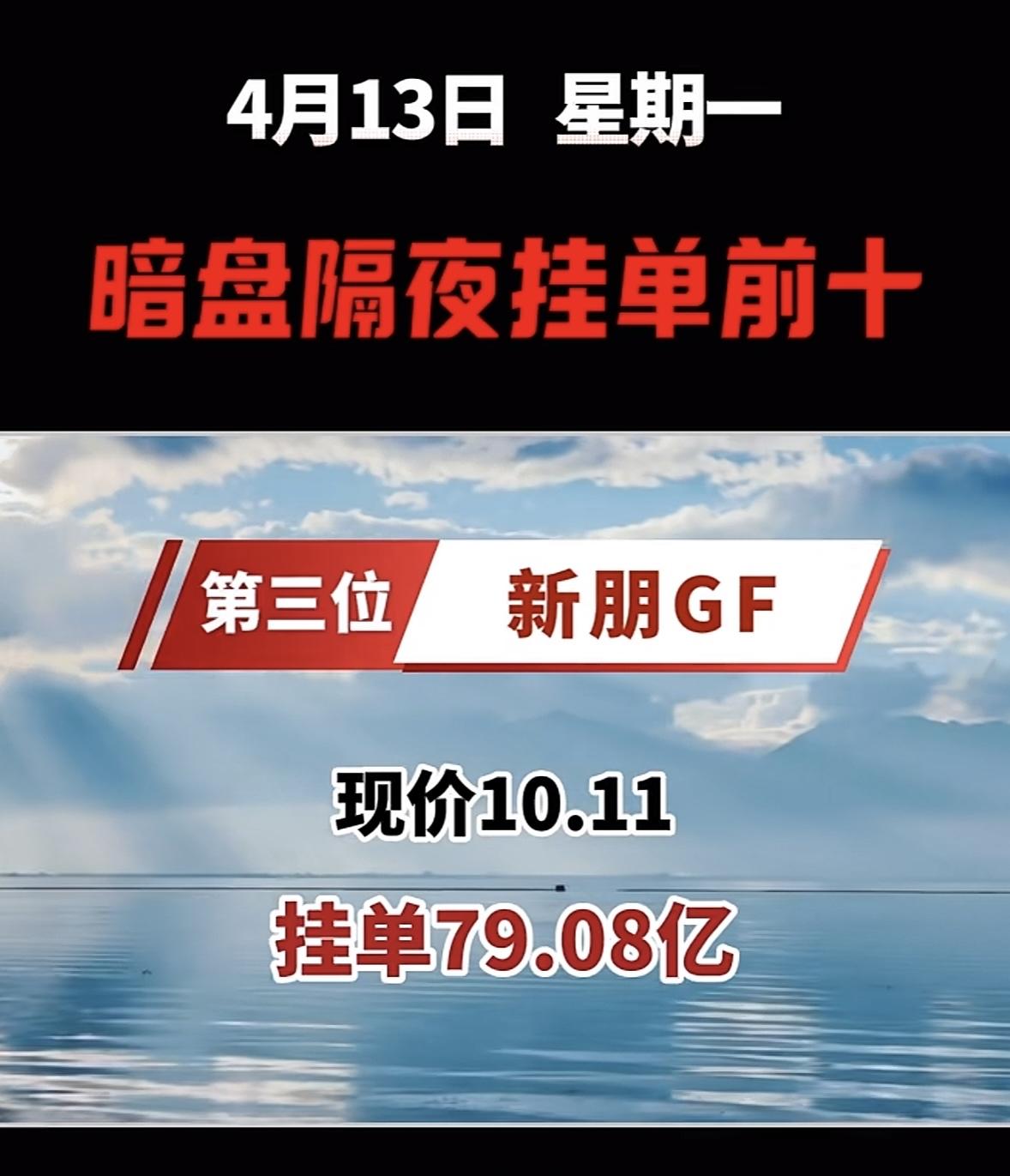 4月13日周一暗盘隔夜挂单排行榜出炉