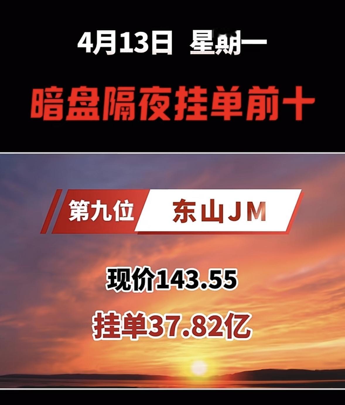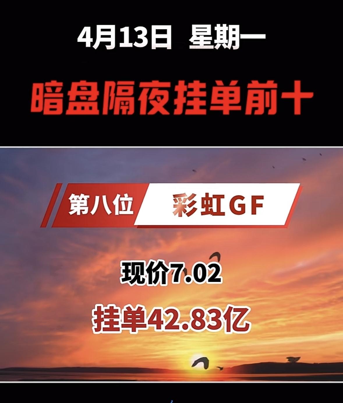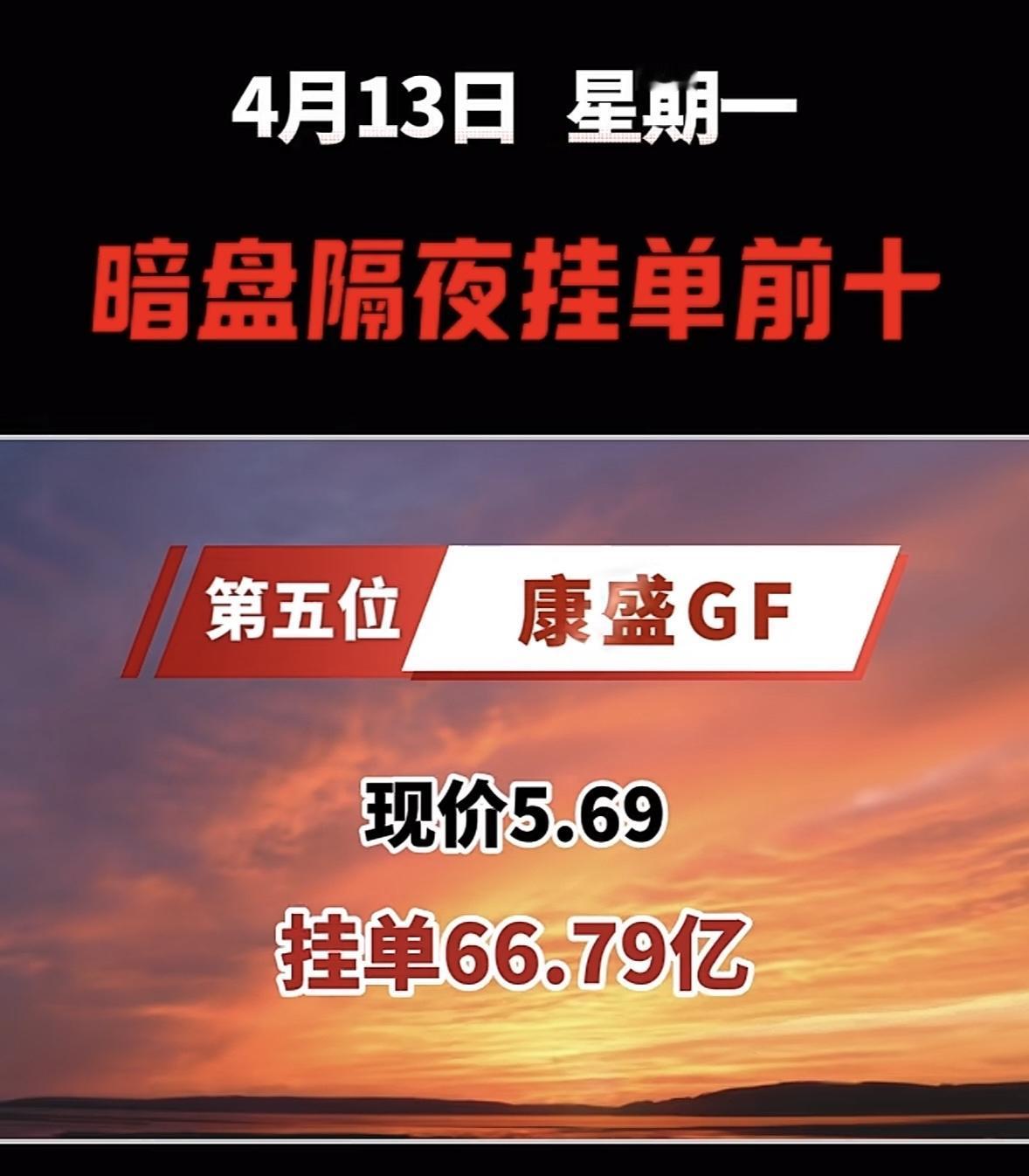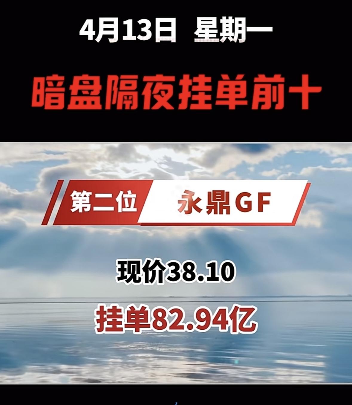 4月13日周一暗盘隔夜挂单排行榜出炉