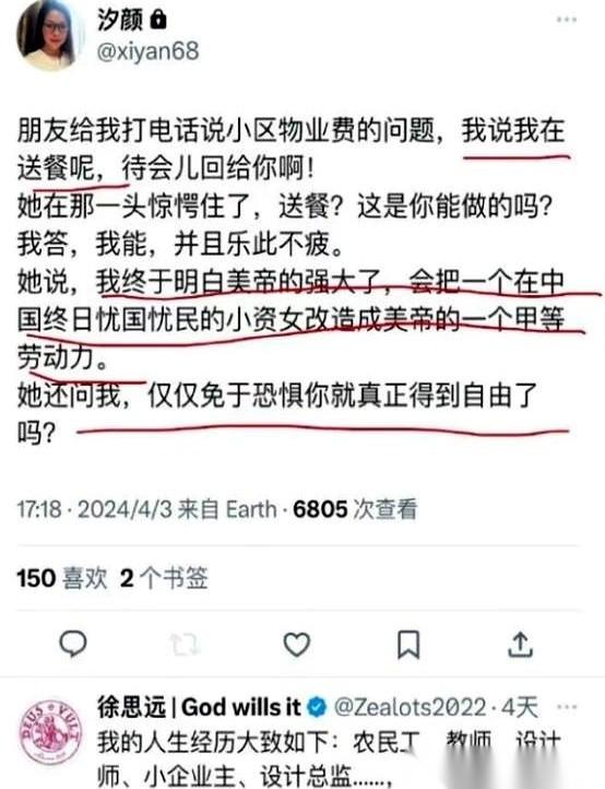那个靠写霸总文,在上海住豪宅年入百万的女作家汐颜,跑到美国送外卖了。
