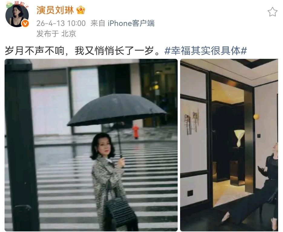 4月13日上午10:00,刘琳在自己的账号说了一句话:岁月不声不响,我又悄悄长了一岁……