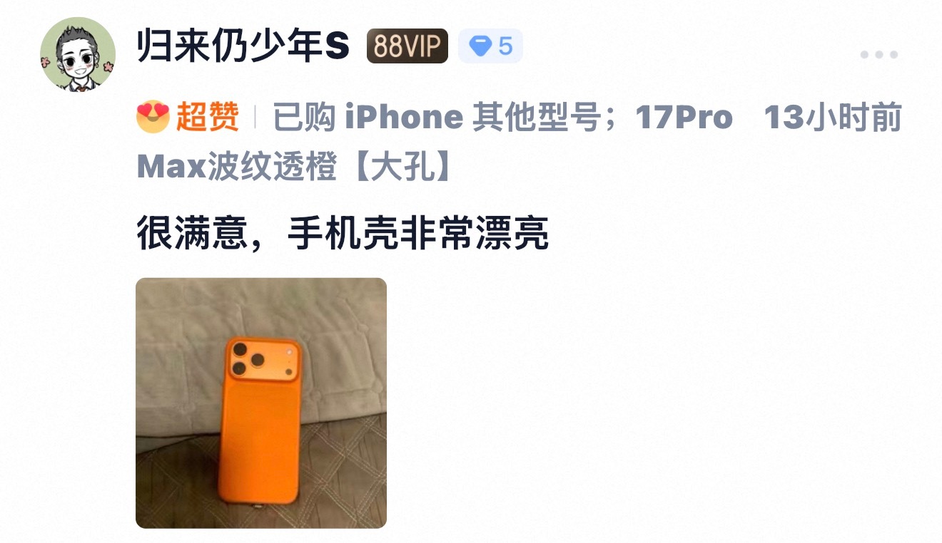 17ProMax 星宇橙机身搭配超薄波纹透橙这组合可以,一体性很高。