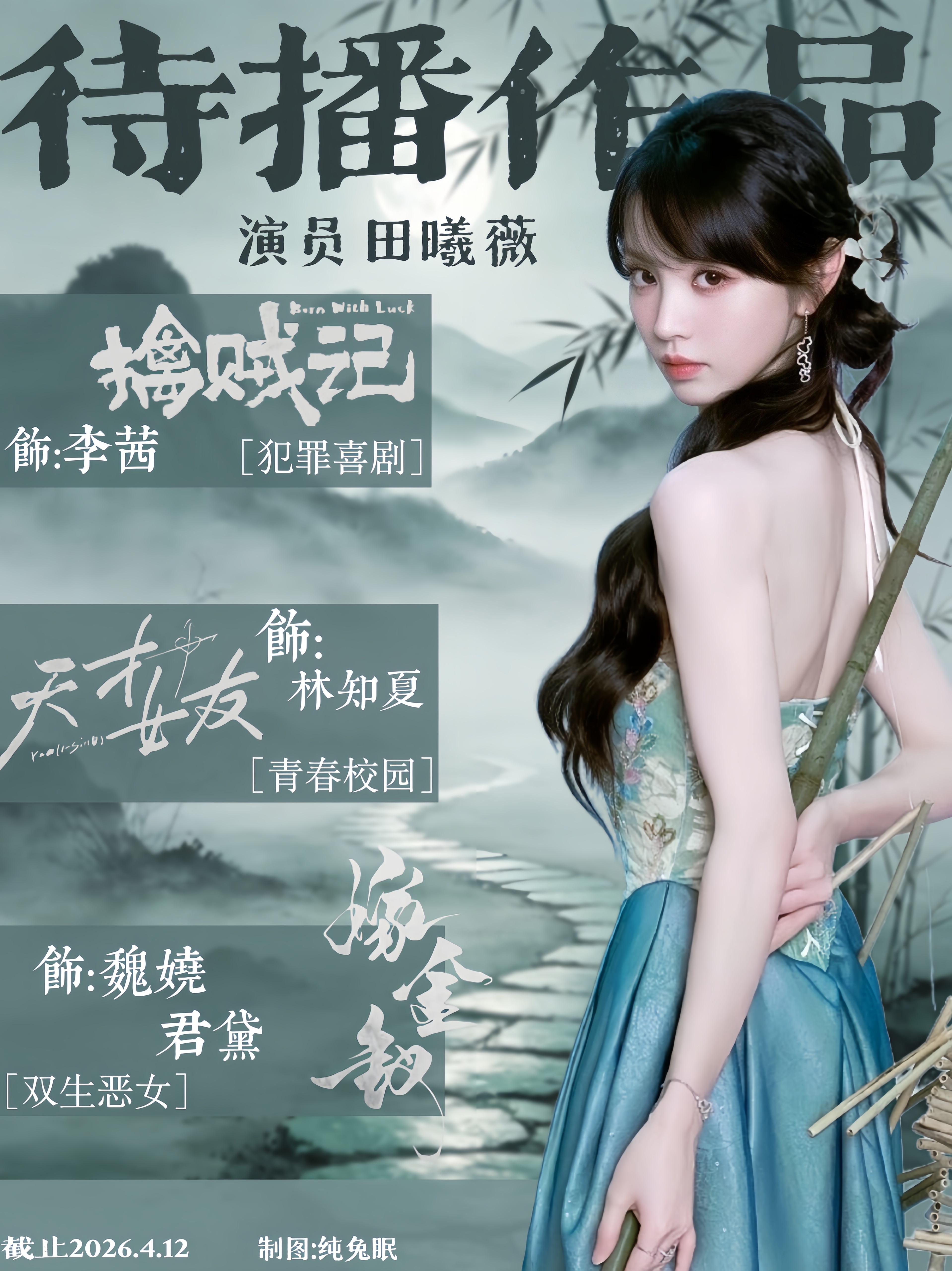 田曦薇拍什么都支持和新丽合作过两部都热度破万了就这个田曦薇优秀也期待她的三部待播