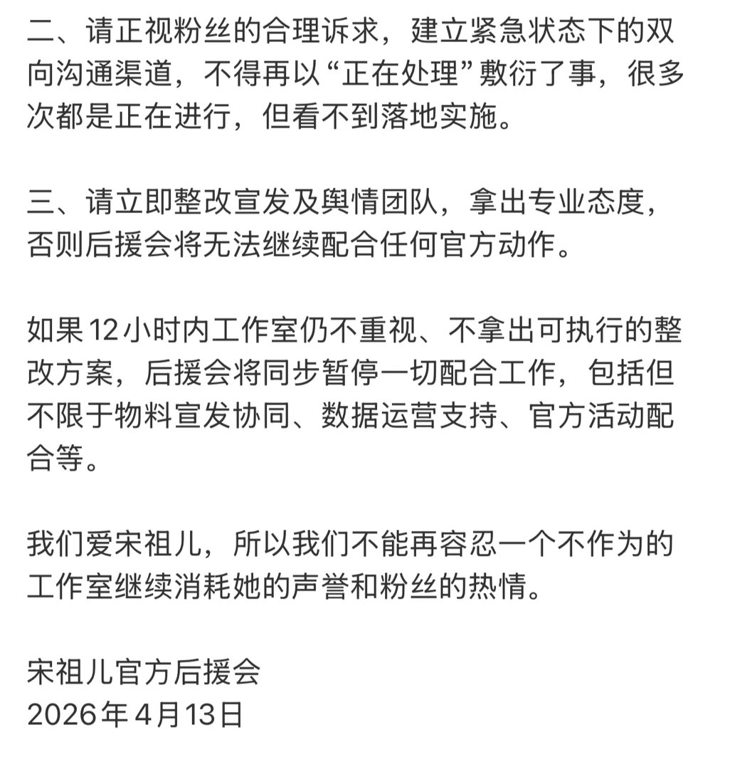 宋祖儿官后向工作室提出诉求,要求12小时内处理造谣事件!赶紧处理吧,一个好好的大