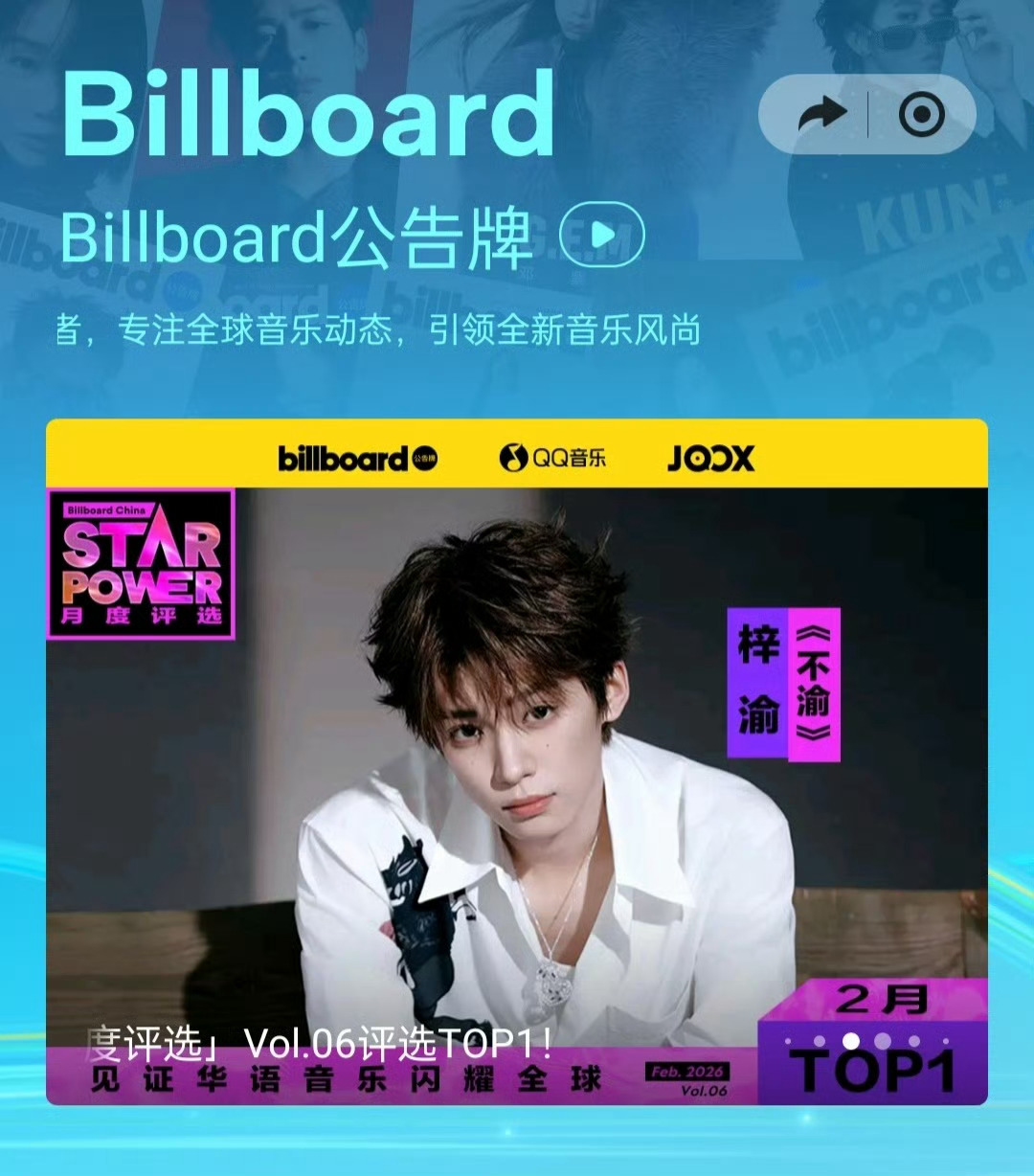 恭喜梓渝连续6个月霸榜Star Power TOP1且是史上首位6连冠歌手从《泥