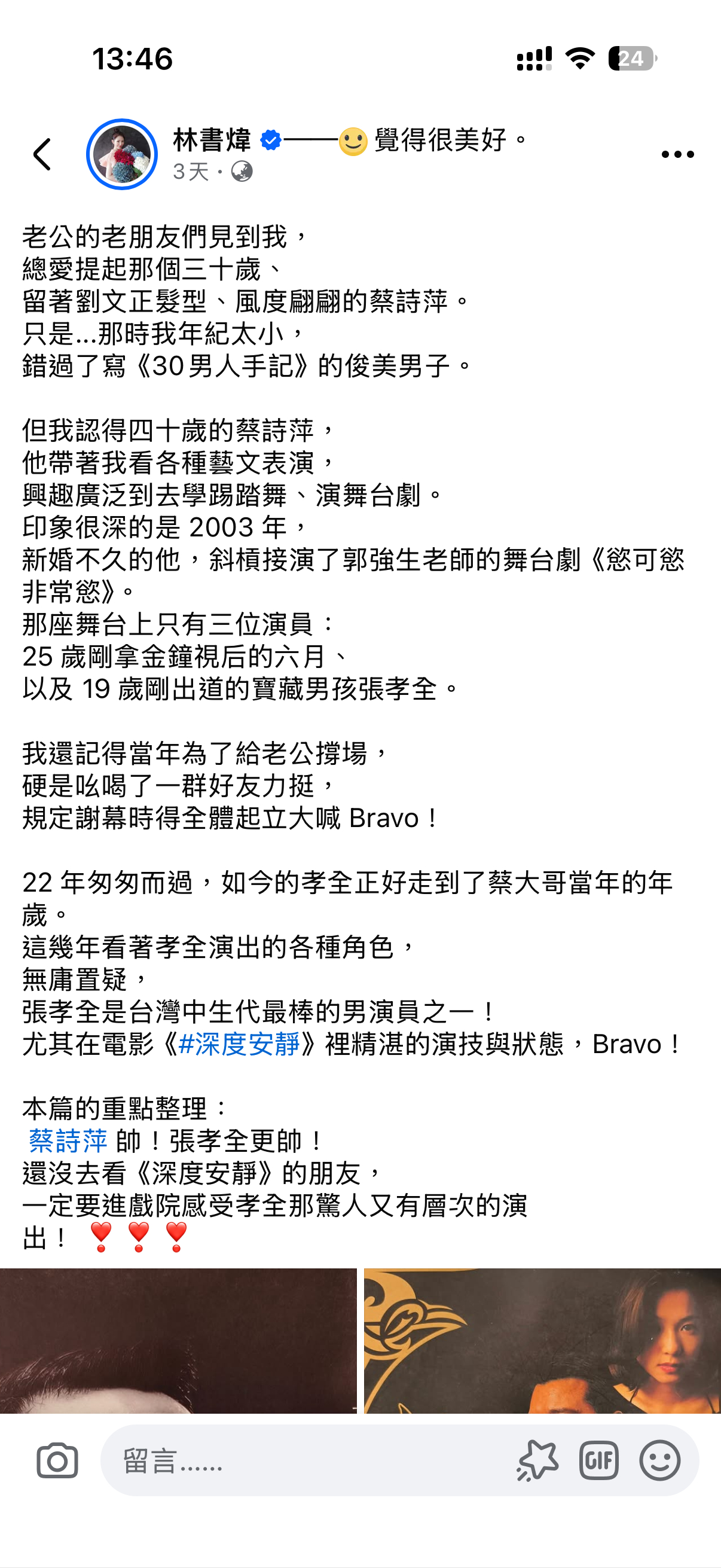 林书炜分享老公蔡诗萍旧照~