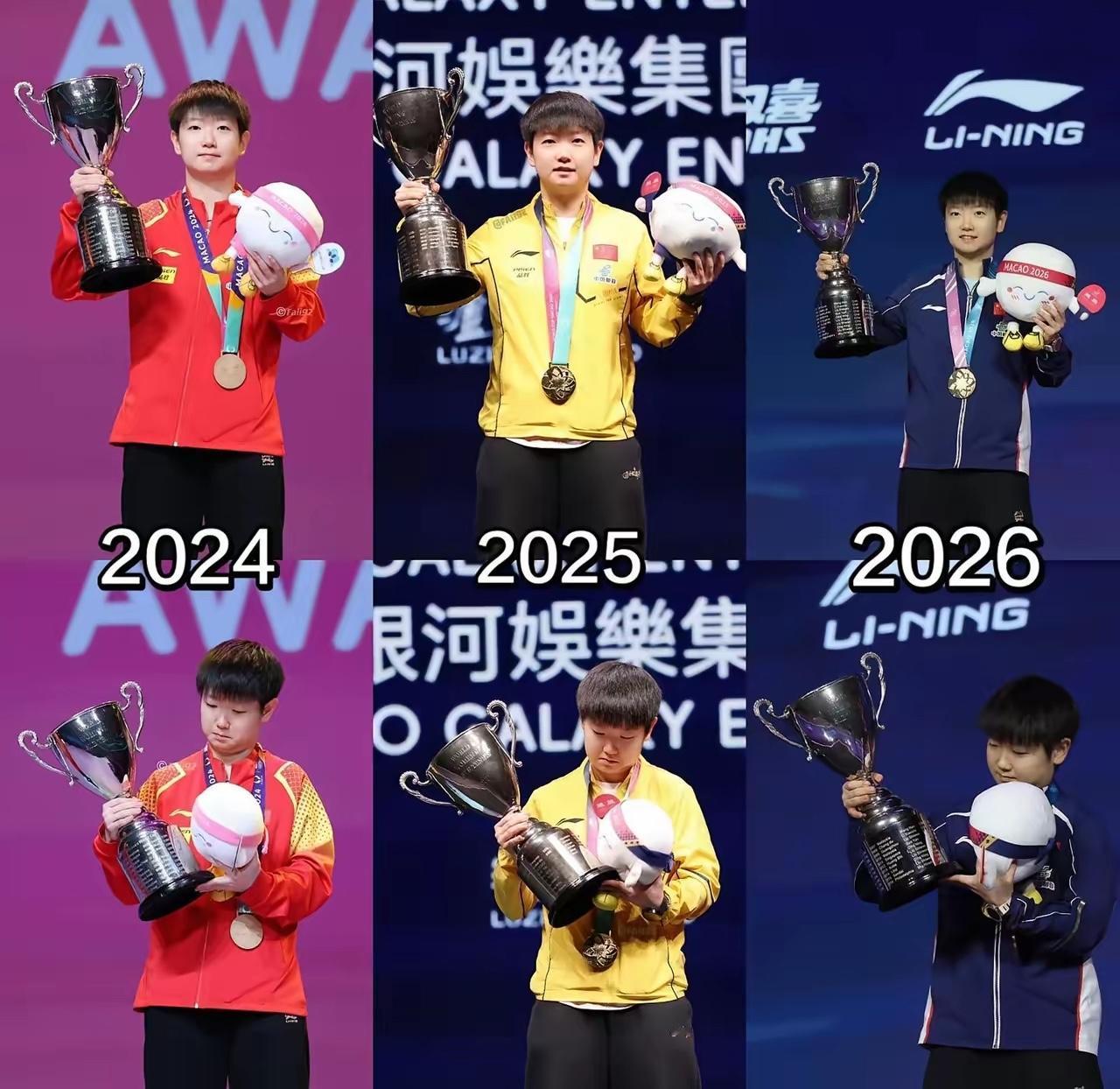 2026年,他们的表现更是神同步。亚洲杯、新加坡大满贯和澳门世界杯,三次同步拿下单打冠军;重庆冠军赛又同步提前出局。就说这次澳门世界杯,晋级之路像复制粘贴,八强、四强赛剧本都一样。女单决赛莎莎强势夺冠,男单王楚钦绝境逆转夺冠。头头能有如今成就,真得感谢莎莎,两人相互成就,未来肯定还会创造更多辉煌!