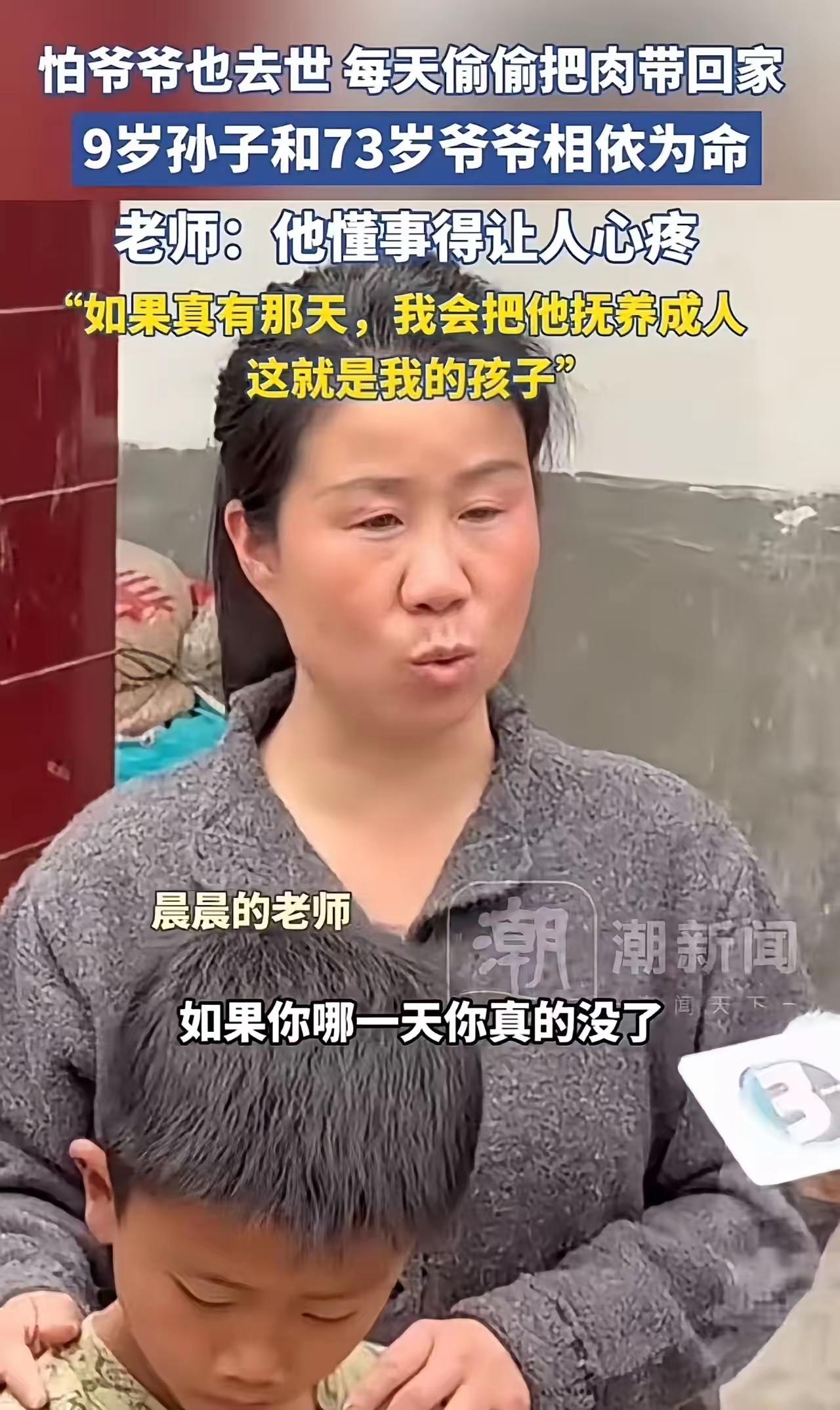 “爸爸去世了,妈妈改嫁了,奶奶也去世了……我怕爷爷也没了。所以我把肉带回去给爷爷吃,他身体不好,我想让他多吃点好的。”