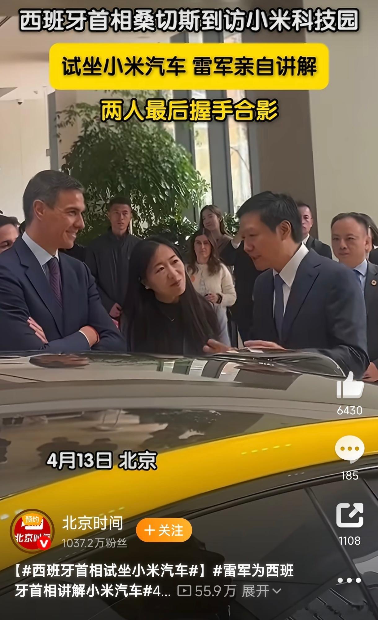 西班牙首相试坐小米汽车【不懂就问】请懂政治的老师讲解下最近发生两件事①中国国民党主席郑丽文率团参观了北京小米汽车工厂②西班牙首相 佩德罗·桑切斯参观小米科技展厅,试乘小米SU7/YU7
