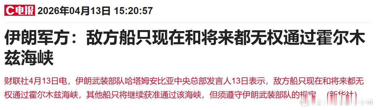 朗子还表示,现在和将来,敌方船只都无权通过霍尔木兹海峡(可以看出朗子的态度非常坚定,下一步就看老美的回应和应对了)