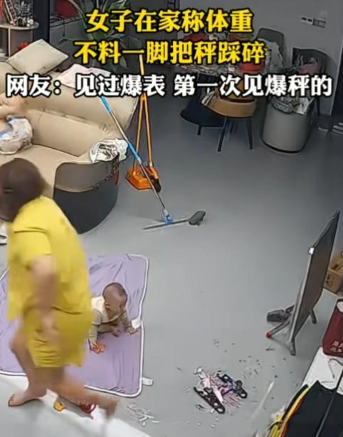 看着女子体重最多撑死了160斤,怎么一脚就把踩碎了?不堪重妇?还是这称质量不行啊?