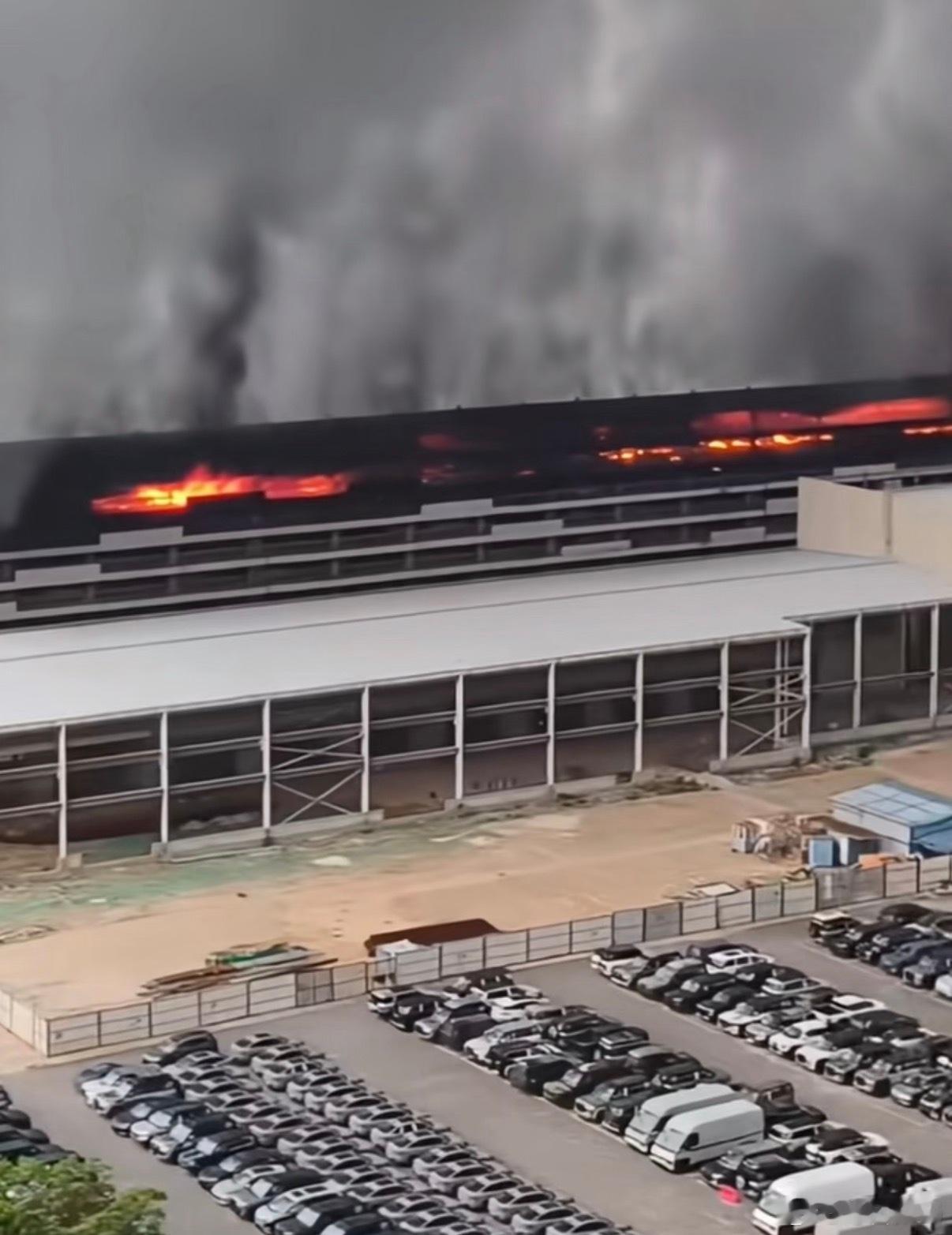 比亚迪公司起火 看火势挺大的,现在火已经扑灭了,万幸无人员伤亡官方通报深圳比亚迪