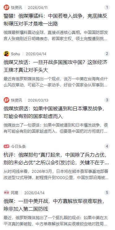 俄媒: 要是中国打仗,会有很多国家对付中国,别以为有航母和导弹就可以不用怕了。只有动武力,把对手彻底打疼的时候,一切都迎刃而解,才能赢来真正的尊重与和平。