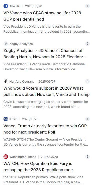 JD·万斯确实是目前共和党内最被看好的下届总统人选。他的民调支持度很高,尤其是获得了保守派核心支持者的力挺。2026年3月,在美国保守派政治行动会议的年度投票里,他赢得了大约53%的选票,连续第二年在这个调查里排在第一。更值得注意的是,他在共和党初选民调里,以43%的支持率遥遥领先,把第二名的国务卿卢比奥(18%)甩在了后面。不过,现在距离2028年大选还有段时间,他的优势也并非板上钉钉。有分析指出,如果特朗普总统本人的支持率下滑,可能会拖累万斯,这给他的选情增添了一些不确定性。
