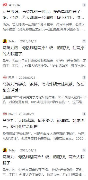 马英九的立场本质上一以贯之,并没有“转弯”——他守的从来不是统一或独立的终点,而是中间那个缓冲地带。可问题在于,2025年到2026年的台海,外部博弈升级,岛内政治极化,这块“缓冲钢板”已经被压得变了形。他试图用“民主”给统一装个减震器,可在大陆看来,这个“民主”很可能被当成拖延统一的工具。两边各说各话,信任薄得像一张纸。