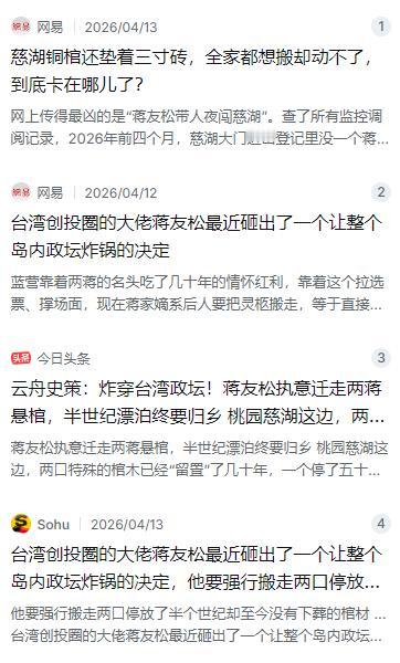 蓝营这边急得团团转,几十年靠着两蒋的名头吃情怀红利、拉选票,真要把灵柩搬走了,等于抽走了他们手里的一张王牌;绿营那边也尴尬得不行,平时天天喊着“去蒋化”,可现在人家蒋家嫡系后人真要自己搬走了,他们反而不知道该支持还是反对。
