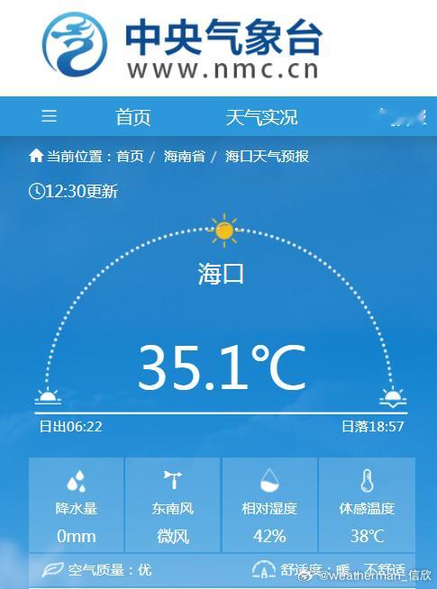 【海口高温】今天中午,海口气温又冲上35℃高温线,连续10天高温,继续改写4月最长连续高温日数纪录。再坚持2天,17日海口就会退出高温圈,18-19日降雨有望把最高气温拉低到30℃以下,19日最高25℃。