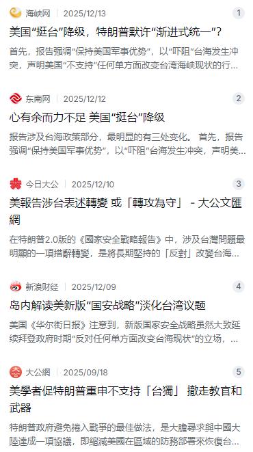 在台海问题上,美国的态度正在经历一场静悄悄但极其深刻的转变。2025年12月,特朗普政府发布的新版国家安全战略报告,把沿用了多年的“反对”任何单方面改变台海现状,悄悄改成了“不支持”。从“反对”到“不支持”,这不仅仅是语气上的软化,更是立场上的实质性倒退。美国企业研究所研究员费瑞安明确指出,这标志着美国涉台措辞的明显降级。更值得玩味的是,新版报告还删除了“一个中国政策”“台湾关系法”等以往的标配表述,为未来的政策调整预留了巨大弹性空间。与此同时,美国国会原本想在2026财年国防授权法案里塞进邀请台湾参加环太平洋军演的条款,结果却在审议阶段被悄然移除,连美国媒体都承认,白宫不想在这个节骨眼上挑衅大陆。