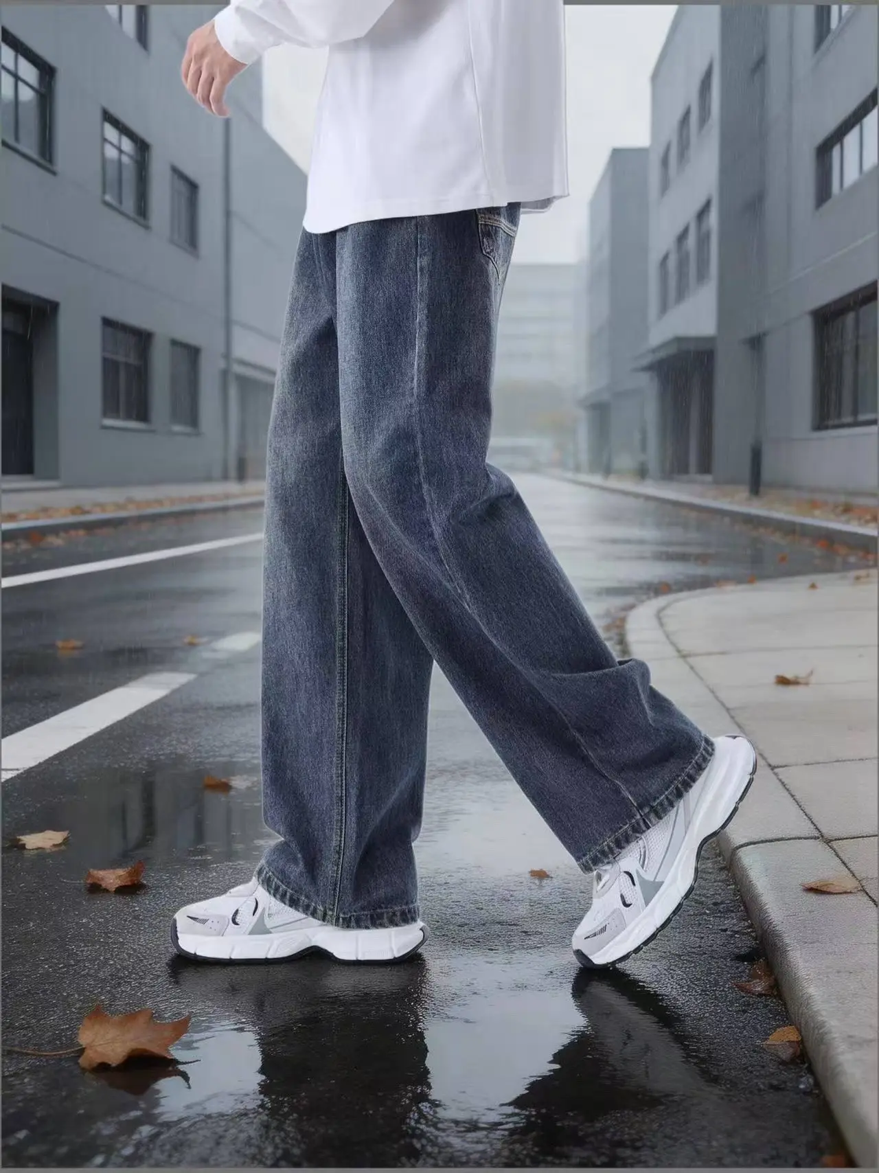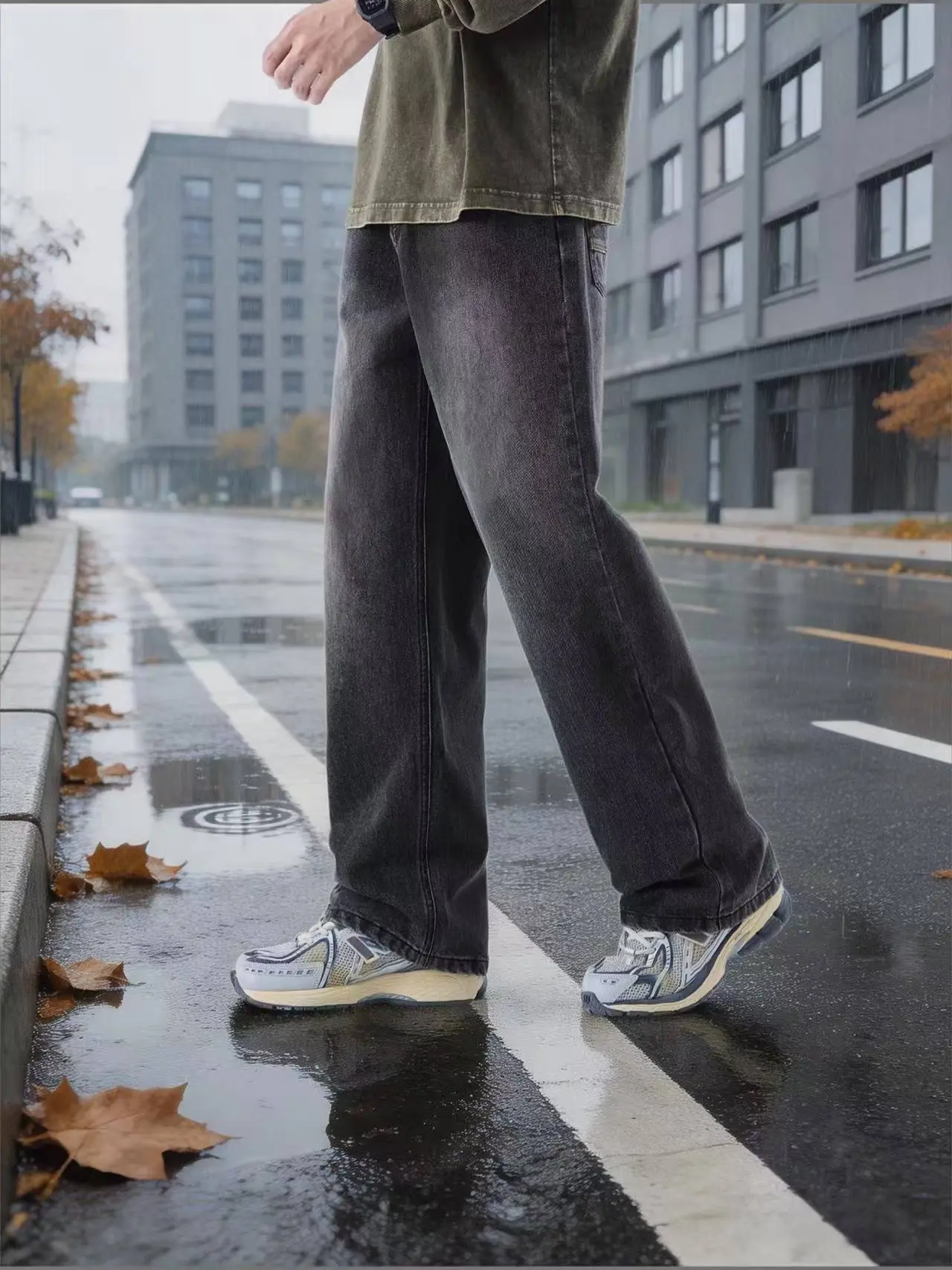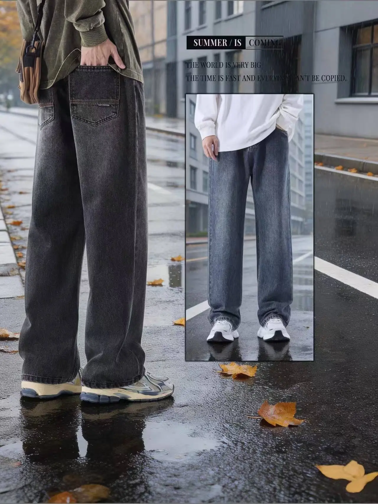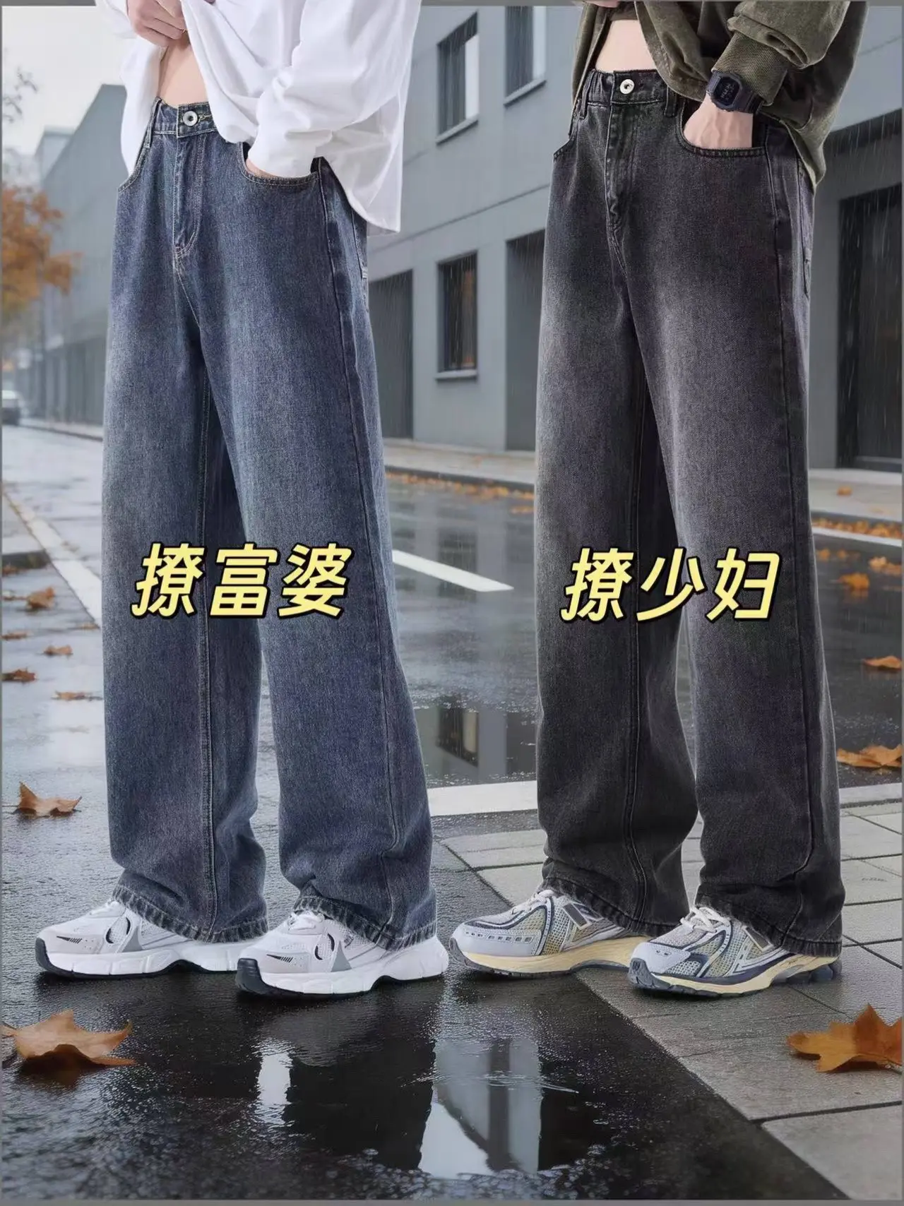 高街直筒牛仔裤 男性阔腿裤 阔腿裤男宽松直筒垂感 高街垂感牛仔裤 垂感男友裤