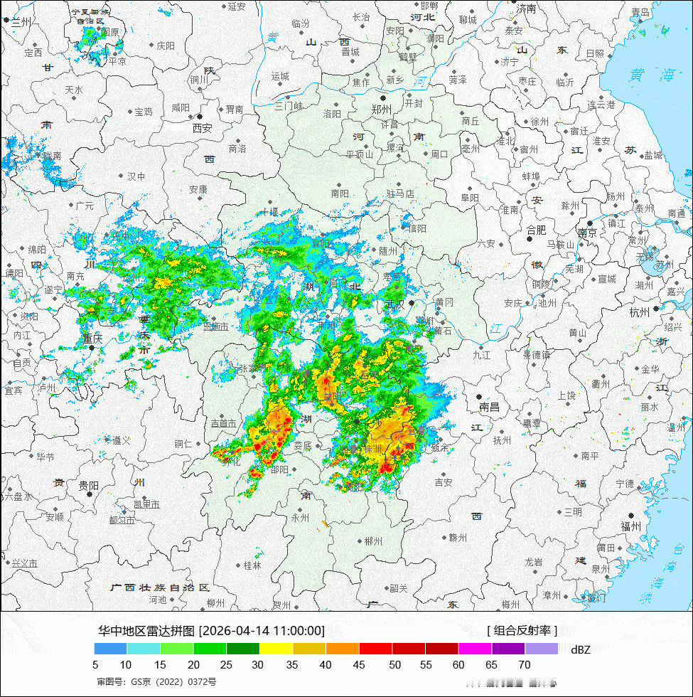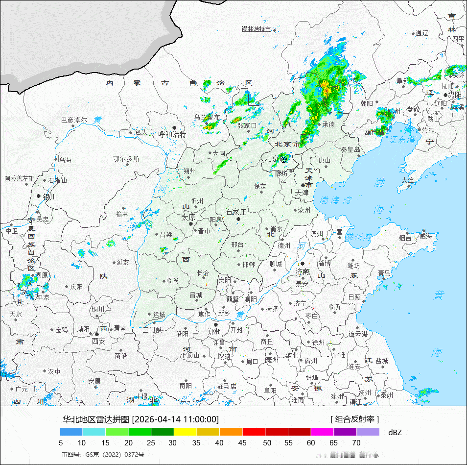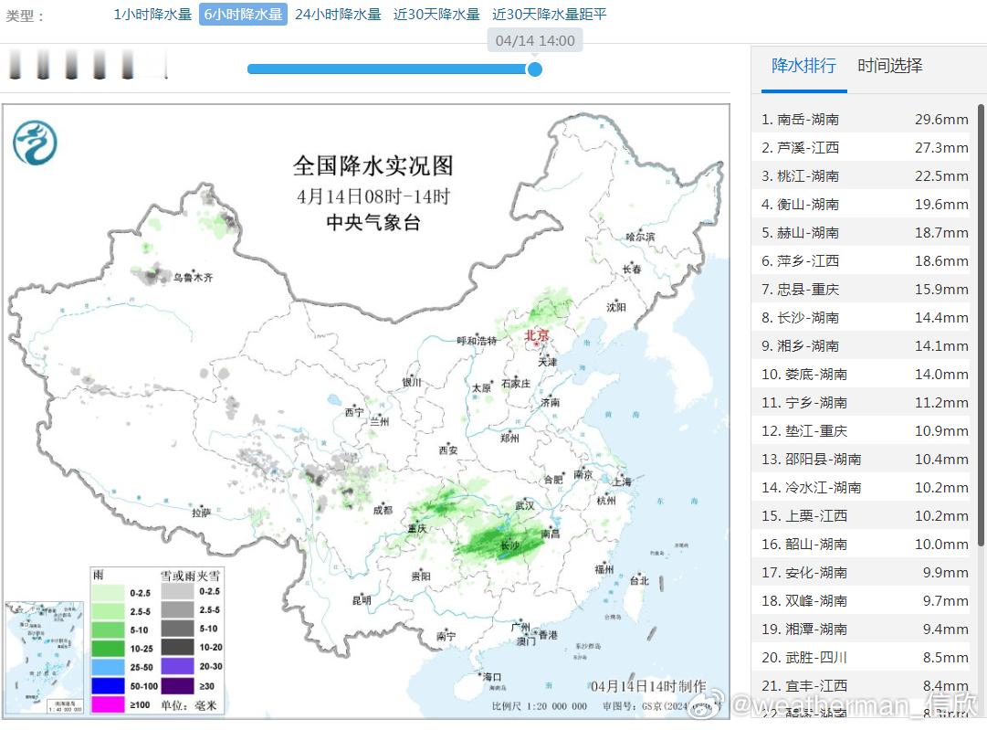 【降水】今天08-14时,降水总体不是很多。湖南江西依然是降雨相对明显的区域,部分区域还监测到了雷电、短时强降雨,此外华北也有小范围的对流活动。从雷达动画看,湖南江西一带的降水在低空西南风推动下,向东北方推进,并在南侧暖区传播,总体东移,河北一带的对流东移南,北京在下午不排除还有短时阵雨。