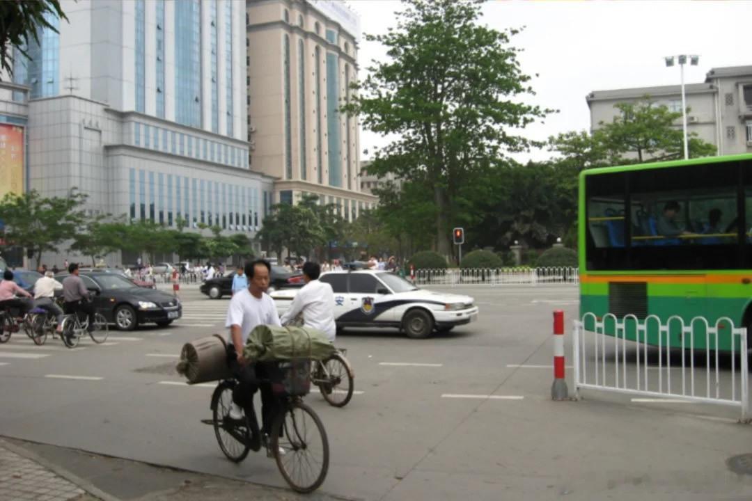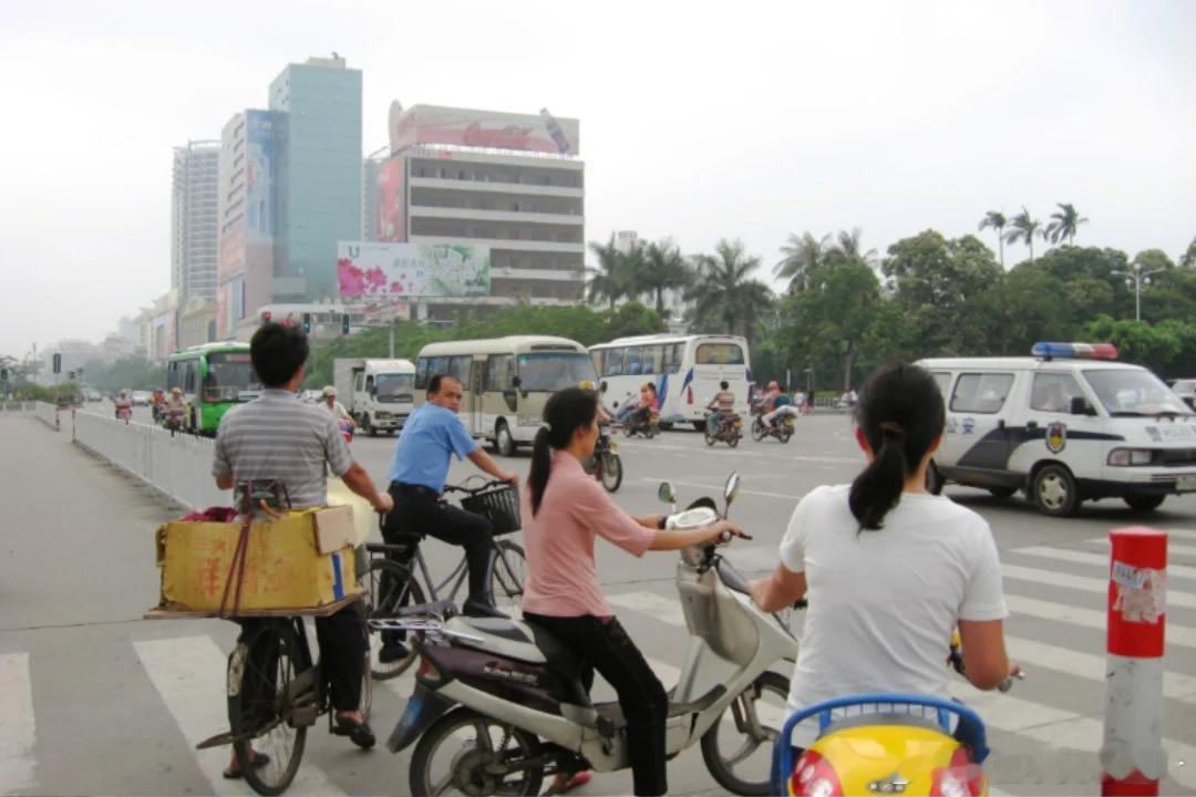 4月13日,广东湛江。男子和同事打完球回家,在红绿灯路口远远看见环卫阿姨用力推车
