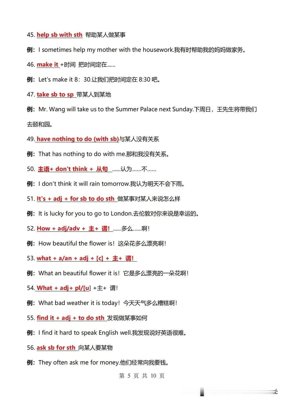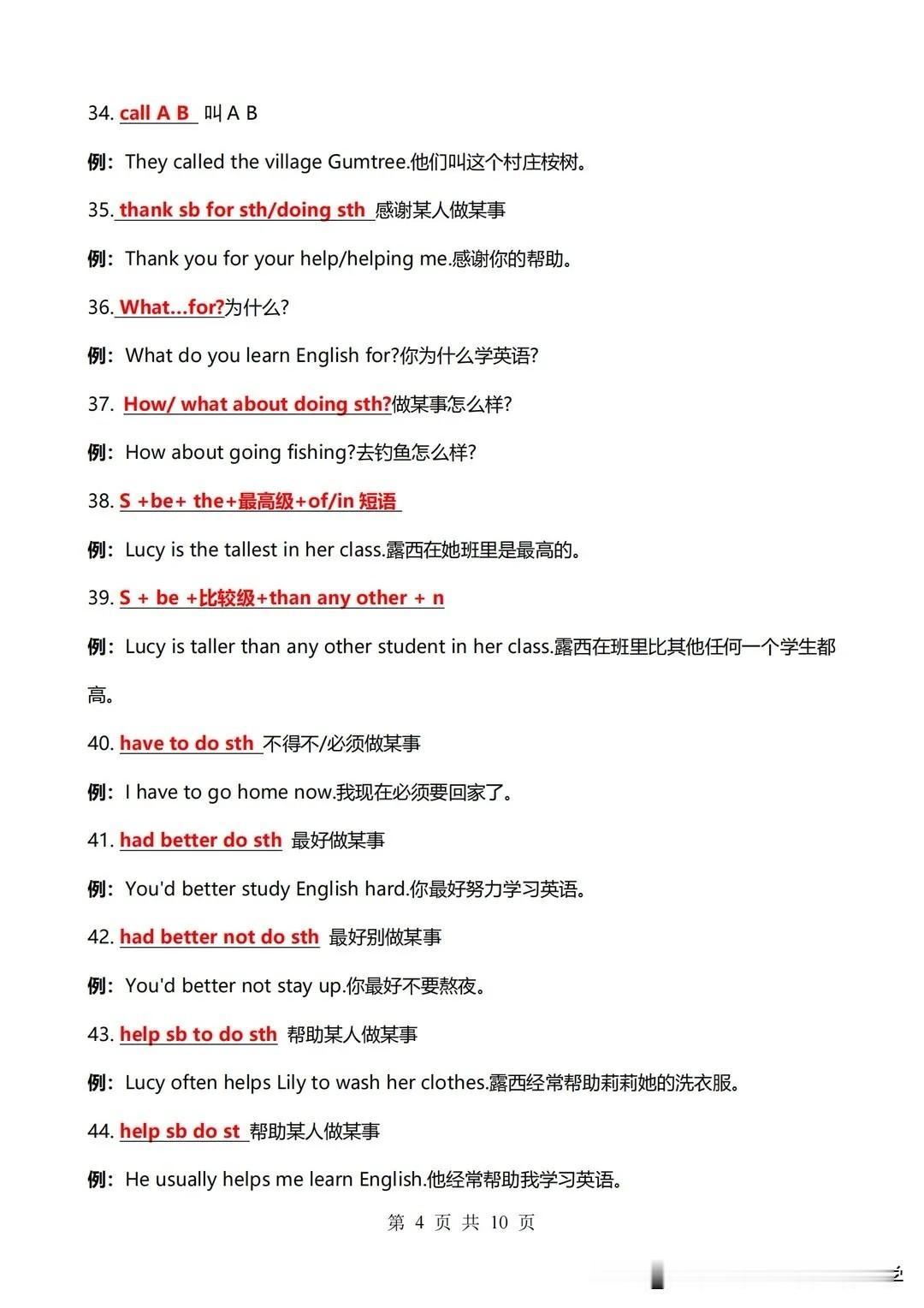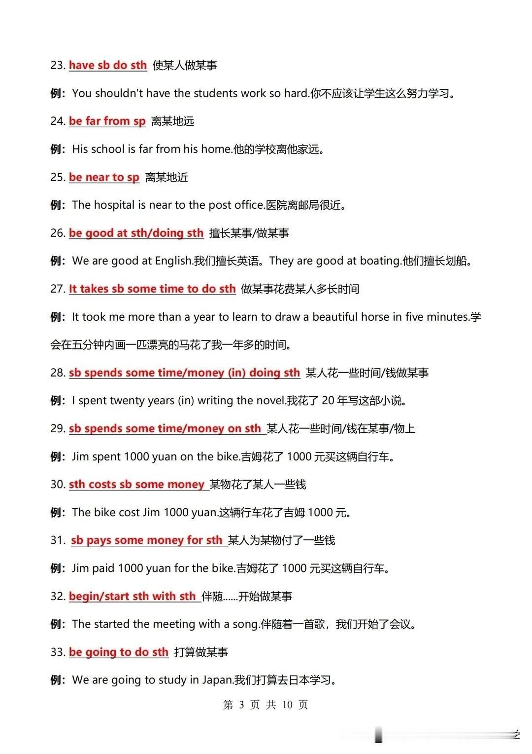 七年级下册英语常考100个经典易错句型 好好学习,天天向上! Study har