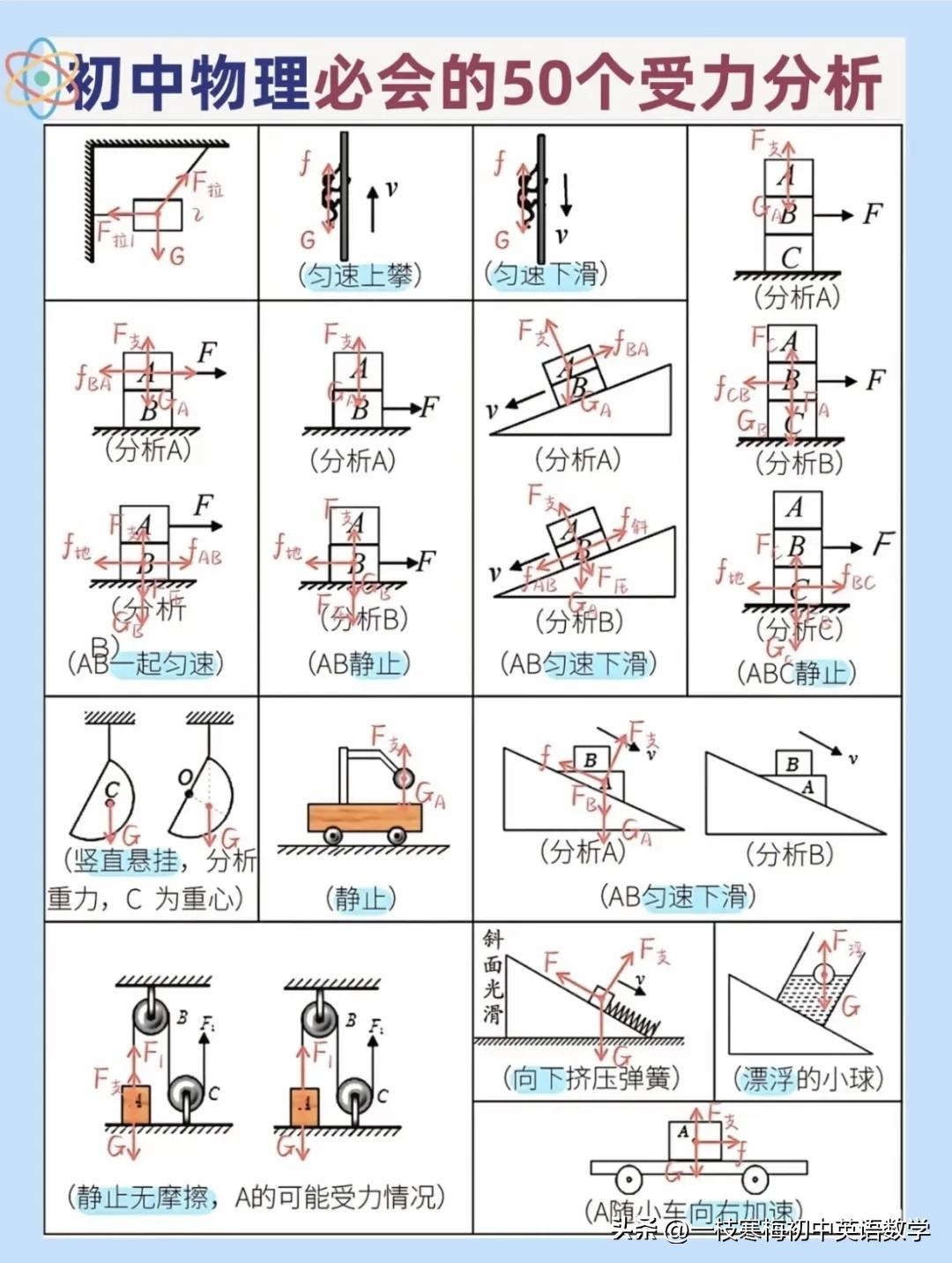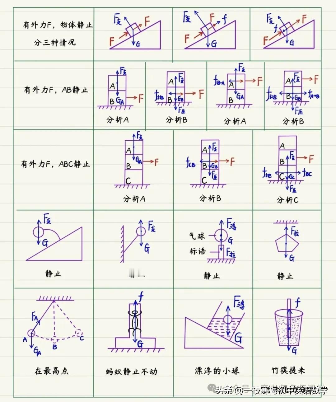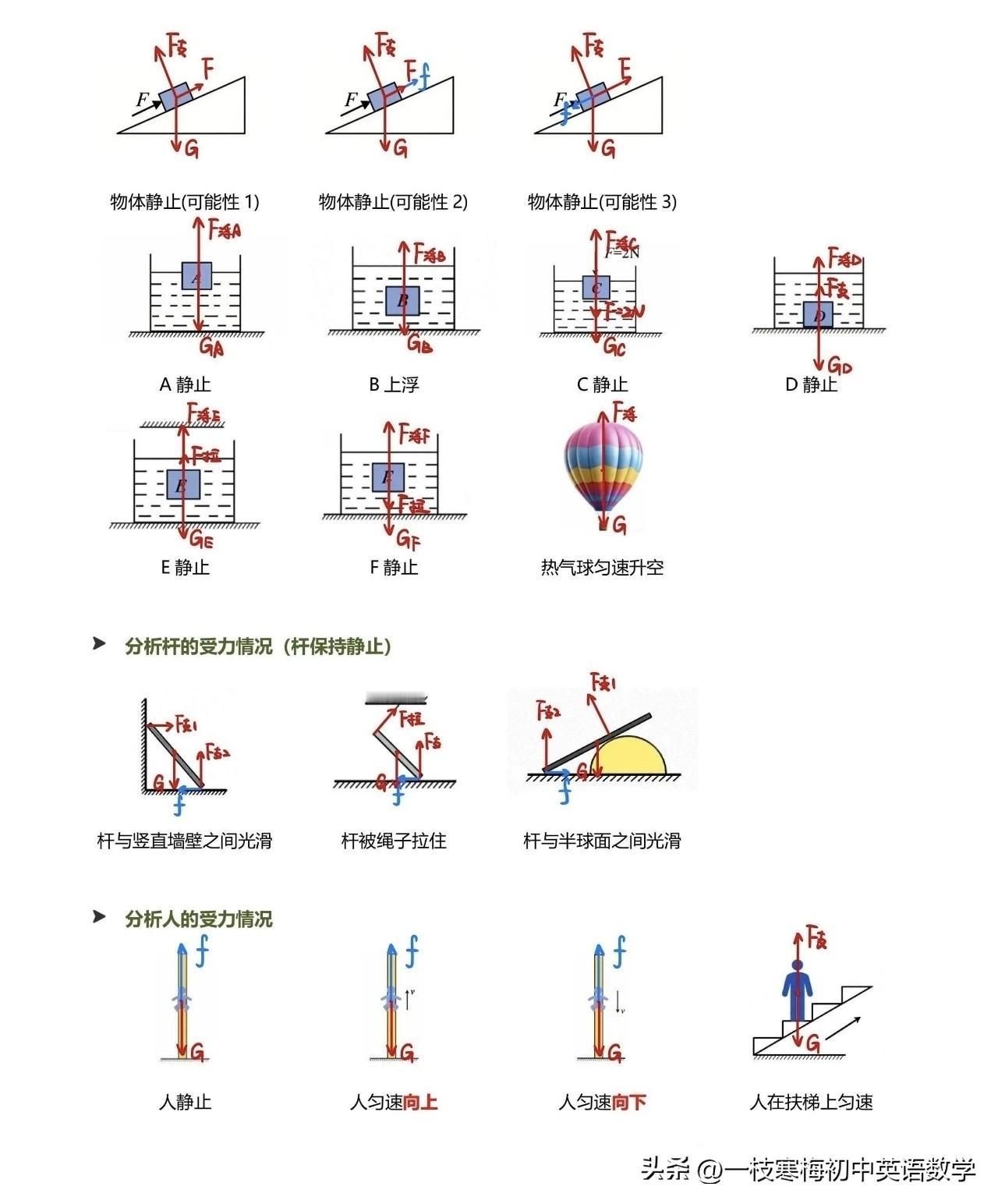 八年级下册物理受力分析示意图! 多做多练,熟练掌握! 好好学习,天天向上!