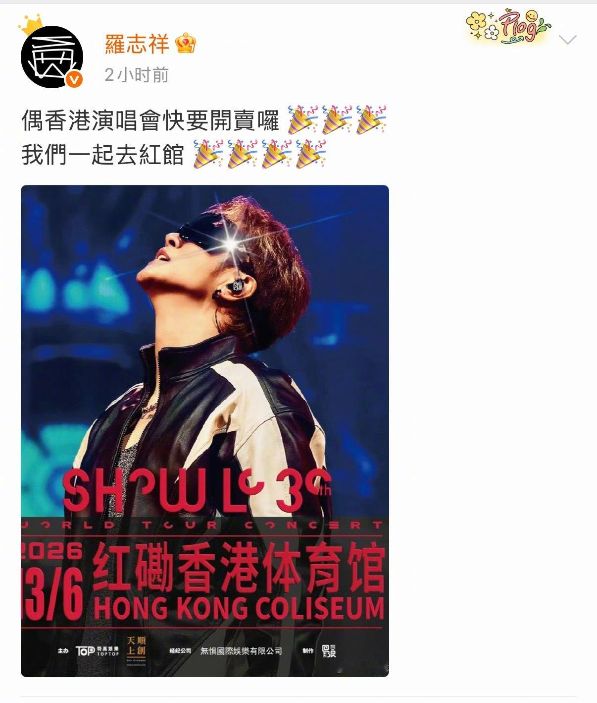 上午经纪人刚辟谣完猝死传闻(虽然我还没听到猝死传言就被辟谣了),下午罗志祥就发文香港演唱会门票要开卖了。