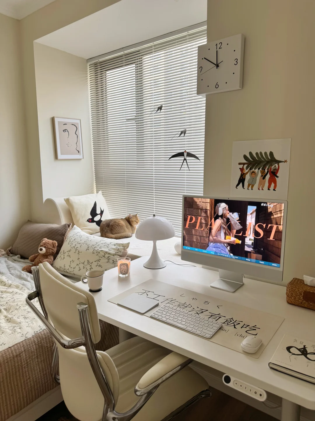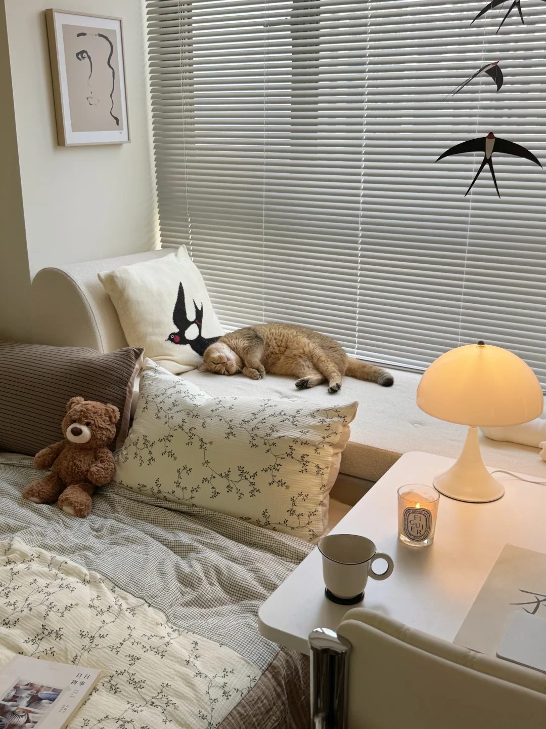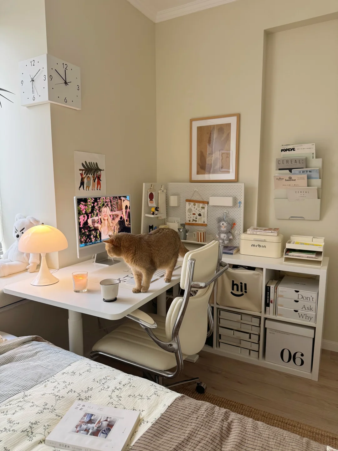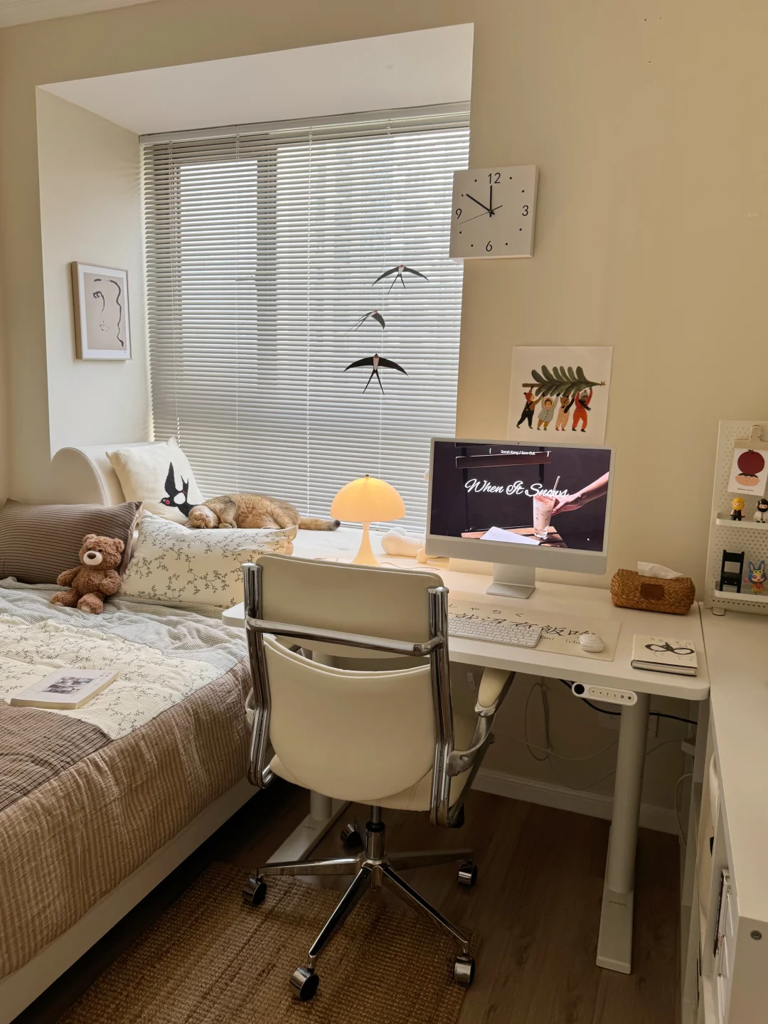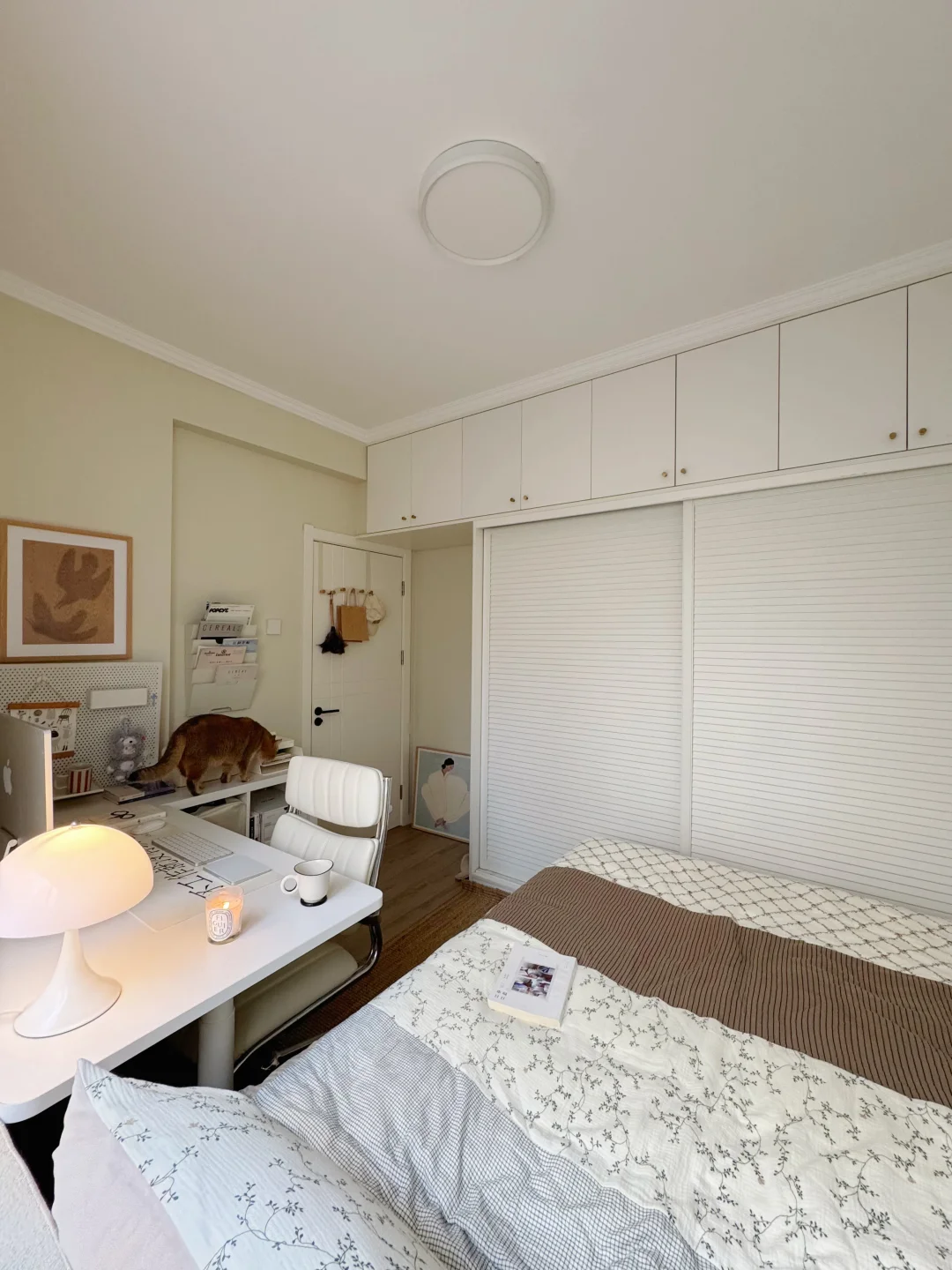 尽力了,8平米的小房间布置成这样已经很满意啦,有宽敞的床和大大的书桌,住起来真的很舒服呀~