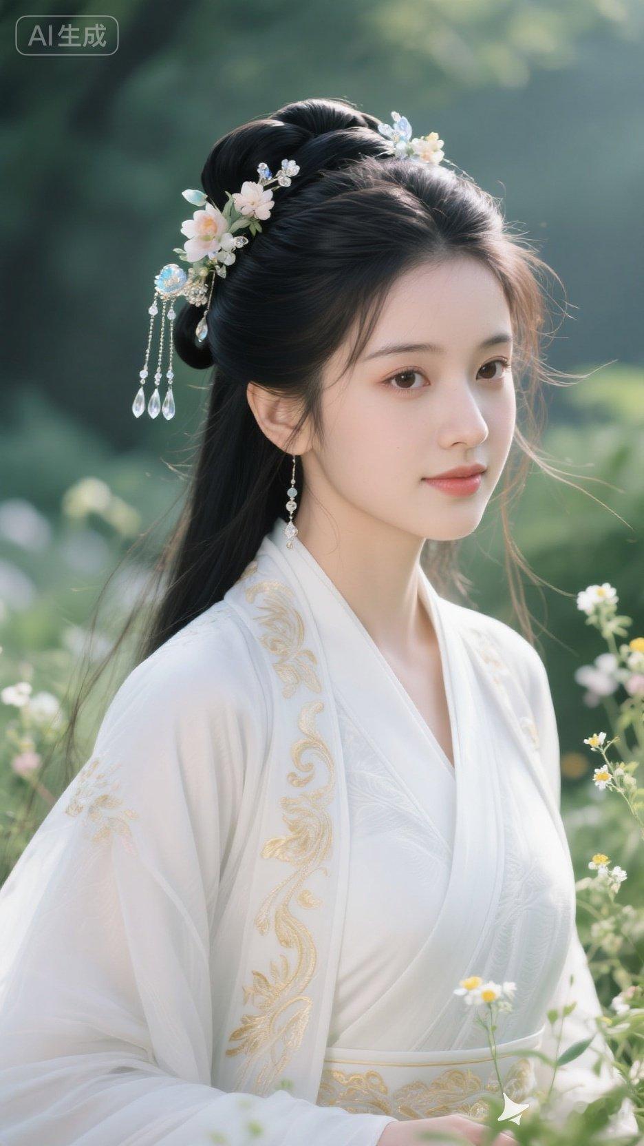 仙气飘飘的汉服少女,花海中的唯美瞬间