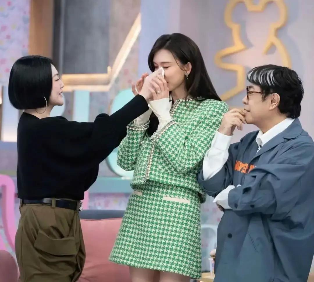 小S先愣住,接着眼泪往下掉,又哭又笑,还伸手给林志玲擦泪。