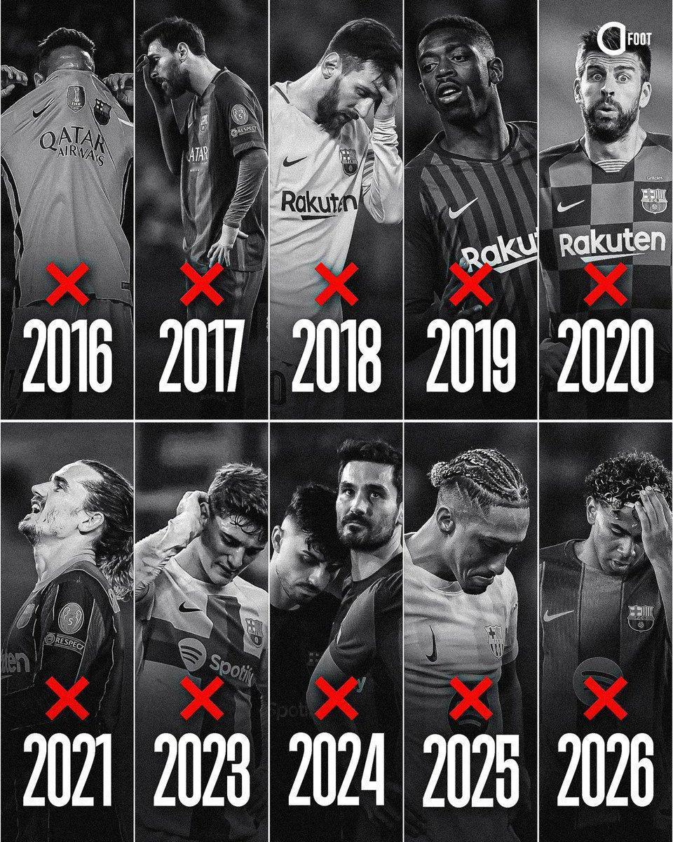 巴萨自2015年以来再次无缘欧冠奖杯,本赛季是联赛得意,但国王杯和欧冠被马竞两次淘汰。