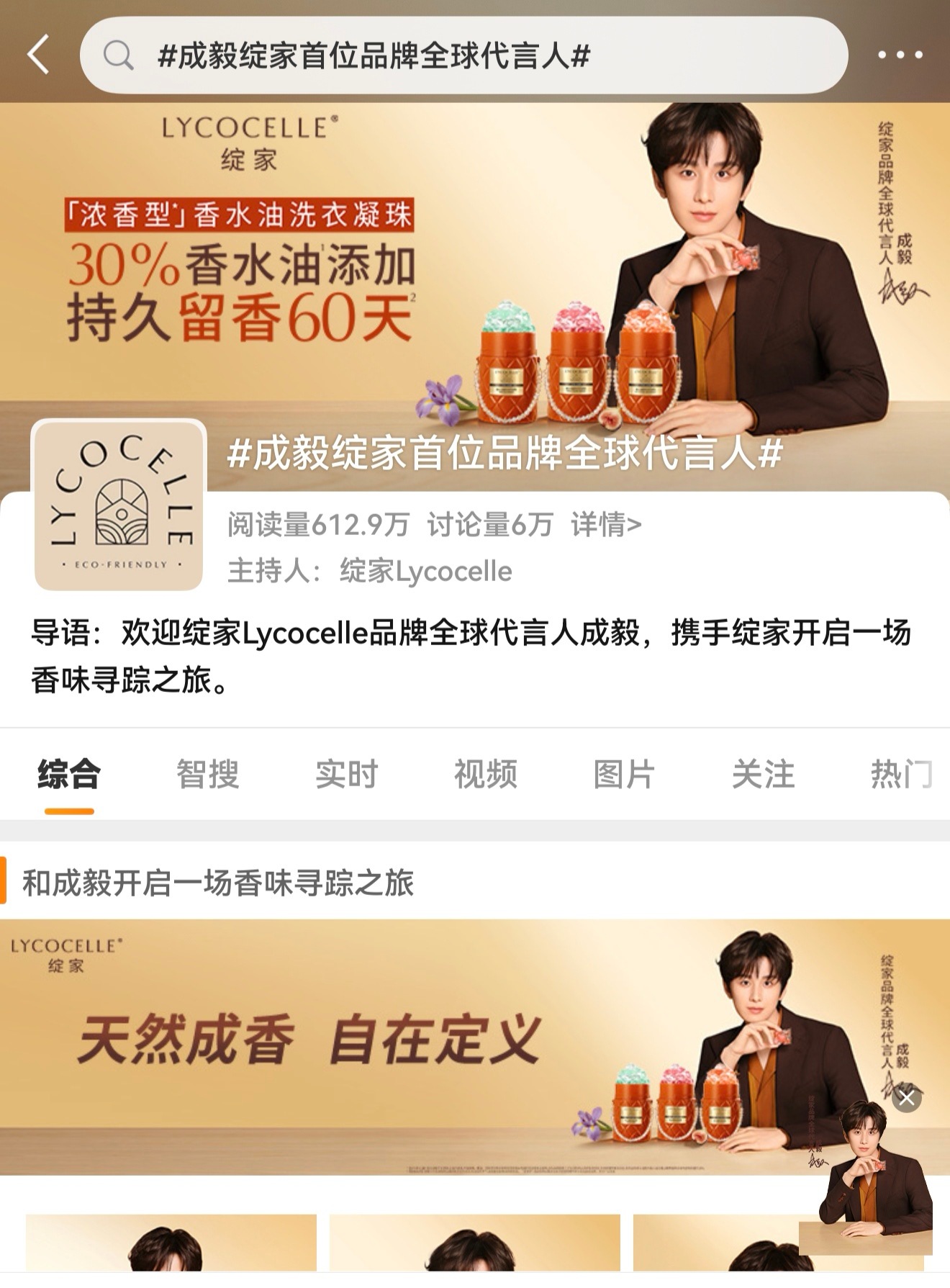 成毅绽家首位品牌全球代言人词条出来了,声量,星品先做起来,带词条发铁官宣立马切礼