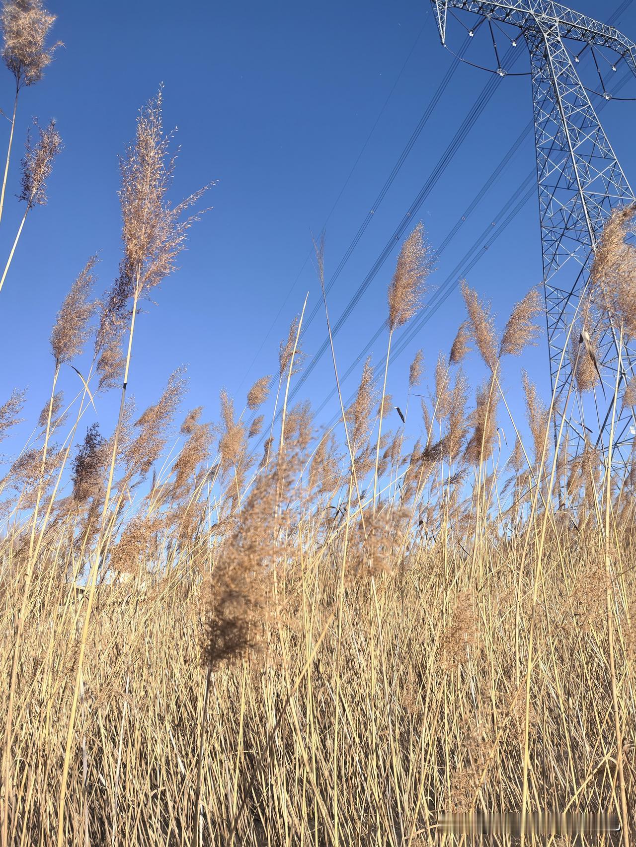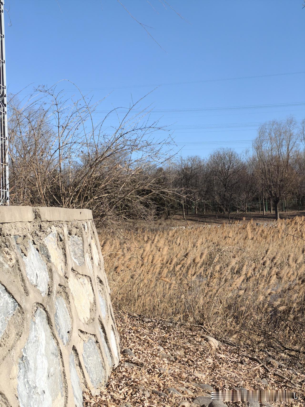 小微湿地的湖面结冰了……风过苇荡,万枝齐鸣……