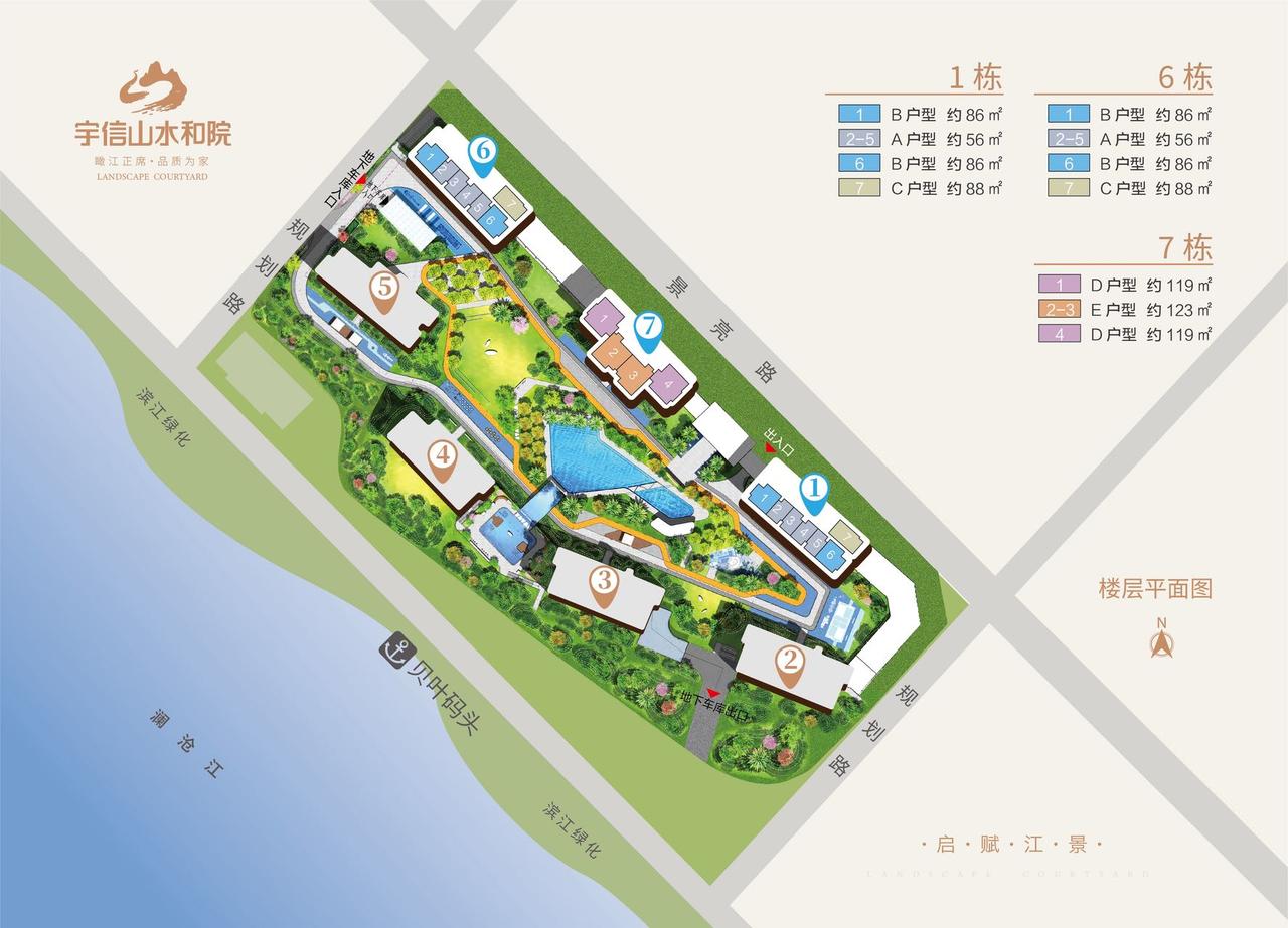户型设计上,1号楼和7号楼是三梯七户,最小面积56平米一室一厅,还有86平米和88平米的三居室;6号楼两梯四户,面积119平米和123平米三室两卫。