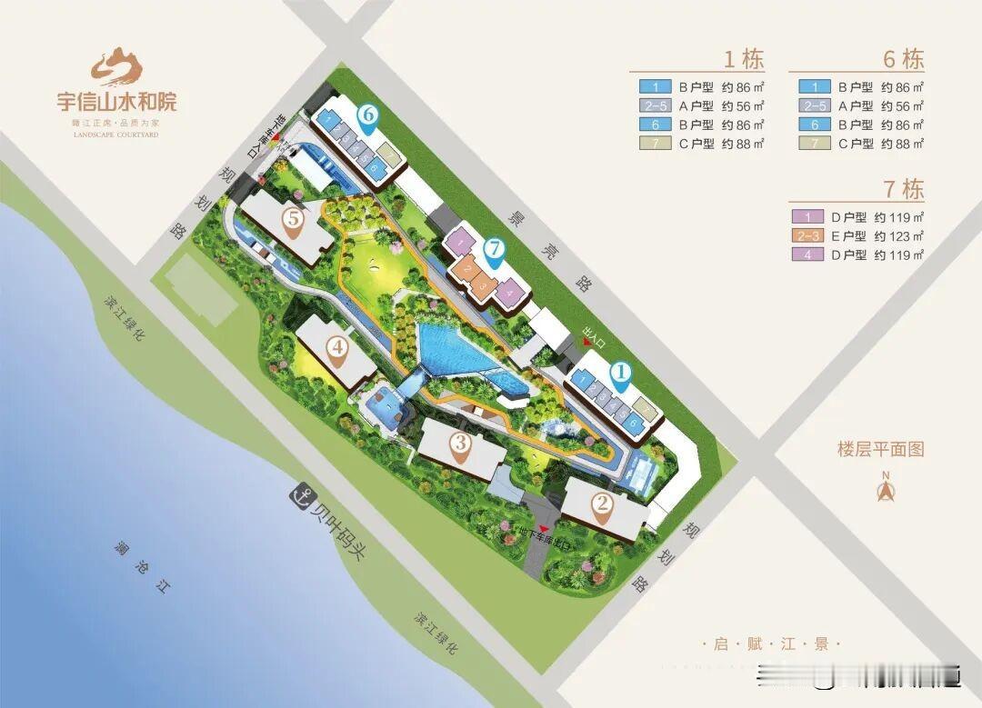 宇信·山水合院在江北景洪市第一人民医院旁(原农垦医院,与十市医院合并,升级为三甲医院),澜沧江畔,板式高层产品,首开1、6、7号楼,面积55-125㎡,定位也比较高,品质不错,均价6500-7500元/平米;