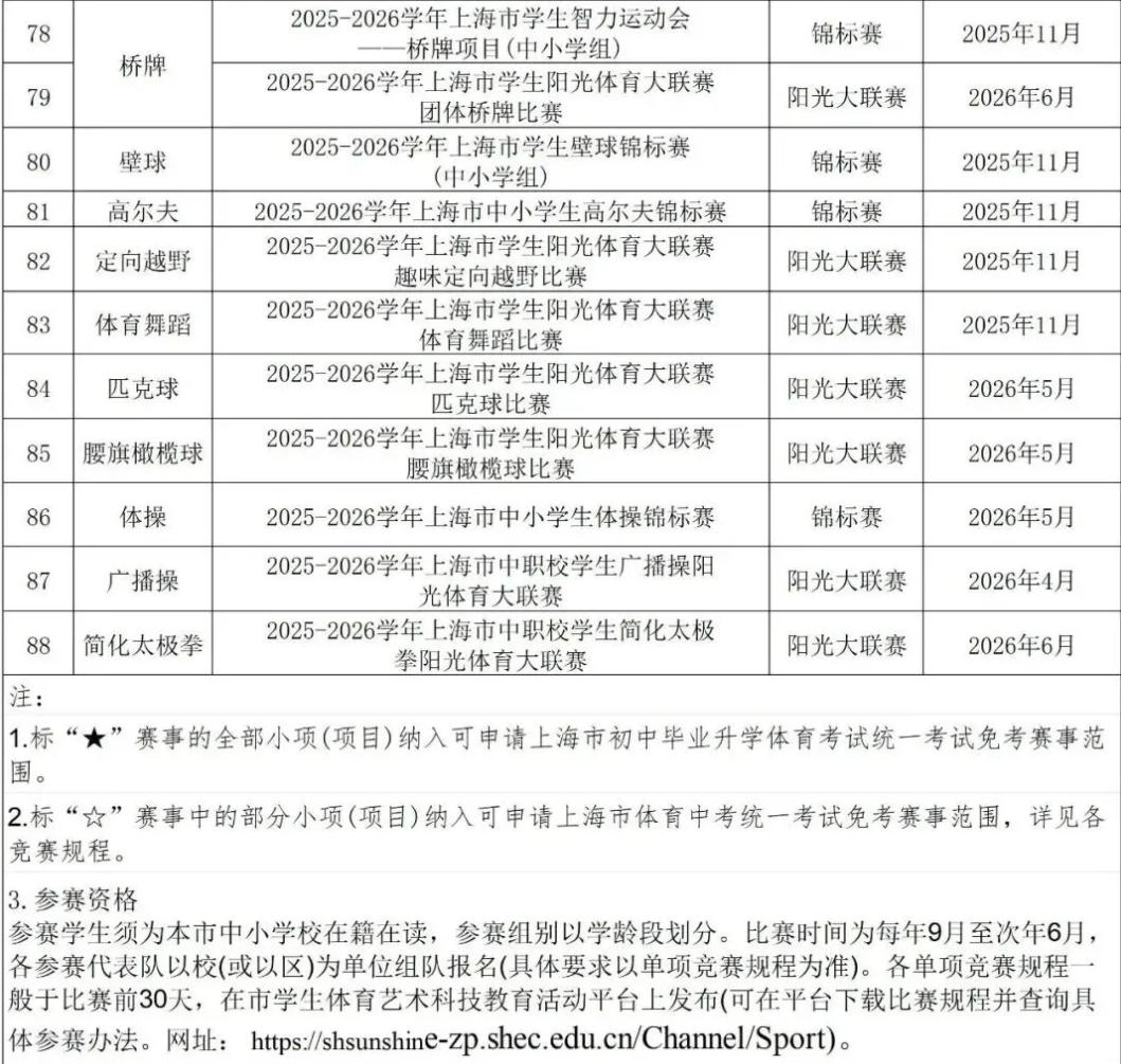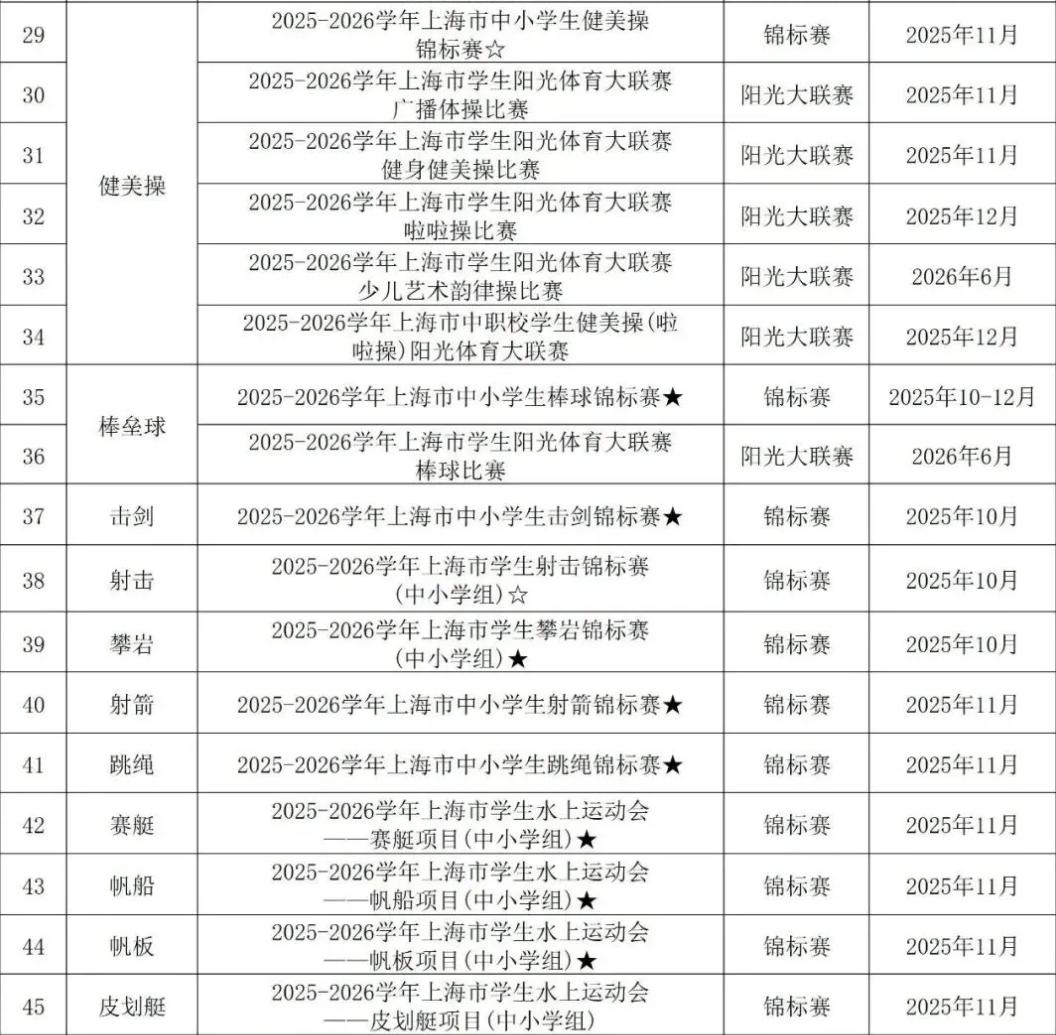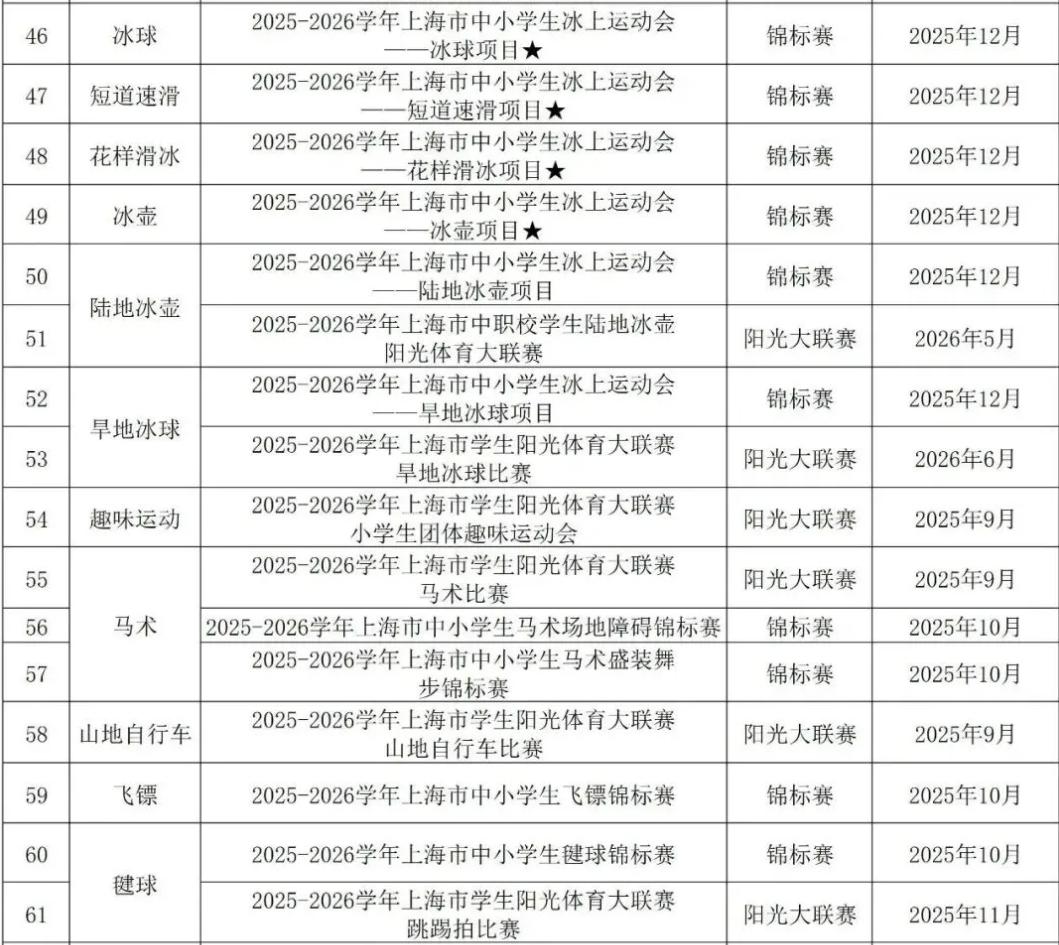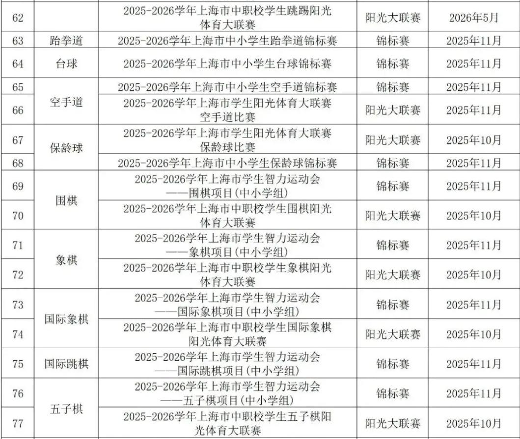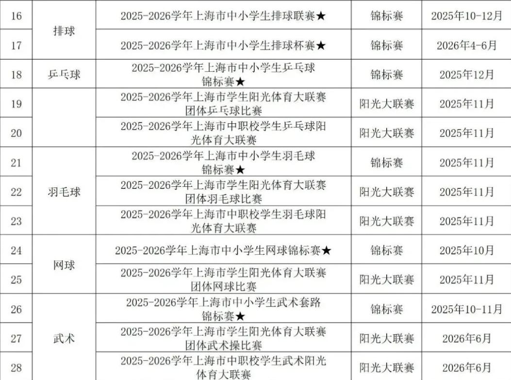 2025-2026年上海市市级中小学生体育赛事竞赛计划上海身边事上海